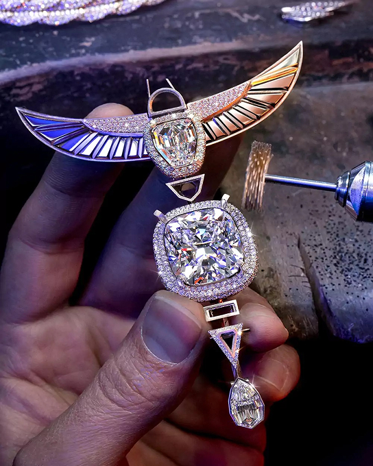 تكتب دار ميسيكا فصلًا جديدًا في تاريخها مع هذه الماسة الرائعة التي تزن 33 قيراط، حيث ينير هذا الحجر الاستثنائي القطعة الرئيسية في مجموعة المجوهرات الفاخرة لعام 2022. وتحلّت فاليري ميسيكا بالجرأة لرفع هذا التحدي المفاجئ من خلال ابتكار طقم Akh-Ba-Ka المستوحى من أساطير مصر القديمة وأسلوبها، والمصنوع من الماس والذهب الأبيض. يضم الطقم 15 ماسة استثنائية قُطعت من نفس الماسة غير المصقولة التي تزن 110 قيراط. في الأساطير المصرية القديمة، ترمز "كا" إلى شرارة الحياة، و"با" إلى التحوّل والرحلة إلى الحياة الآخرة. وتنتج "آخ" عن اتحاد هذه القوى لترمز إلى تحوّل الشخص إلى روح مشرقة. وبالتالي لا ترمز Akh-Ba-Ka إلى سمو ماسة رائعة غير مصقولة فحسب، بل إلى قصة الانتقال والأسرة والمهارة الفريدة أيضًا.