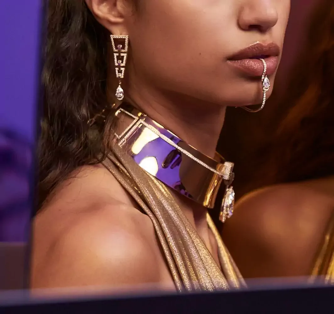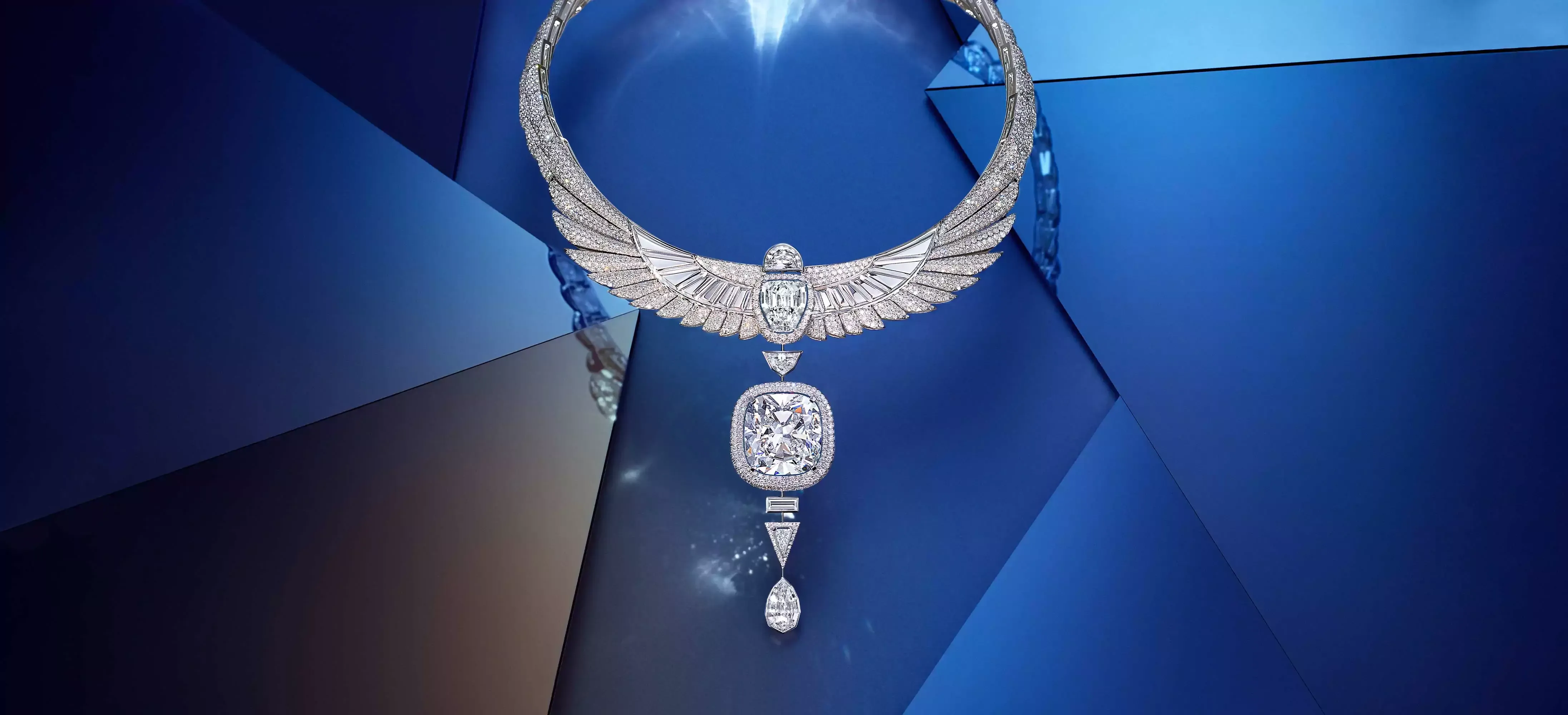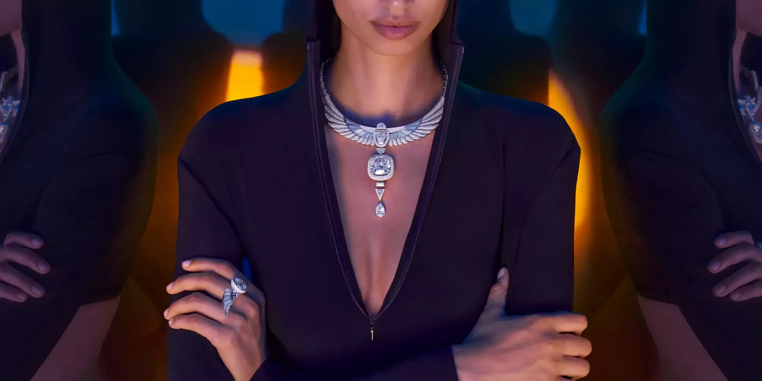 تستعرض فاليري ميسيكا هذا العام جاذبية مصر القديمة وما تتسم به من روعة وغموض. وتكشف عن مجموعة من المجوهرات الفاخرة اللامعة والقوية، وهي مجموعة Beyond the Light التي تبدو كشلال متوهج من الذهب والماس، كوعد بالتألق الأبدي. تصوّرت الدار الباريسية رحلة فريدة وغامضة كقصة ملحمية آسرة، يصوغ فيها الشغف والجرأة والامتياز مجموعة خلابة وفخمة ذات طابع فني لا مثيل له. تمزج المديرة الإبداعية بامتياز بين مصادر إلهامها ومهارتها الحرفية. من خلال نقاوة الأشكال والخطوط الغرافيكية والإطلالة المهيبة والأحجار الاستثنائية، تقود فاليري ميسيكا سيمفونية بين الماضي والمستقبل، مشبعة بلمسات من مصر وأساطيرها الآسرة. وتشكل الأطقم الفريدة والمبتكرة، التي تتحوّل فيها الماسات من قطعة إلى أخرى، مجموعة من المجوهرات الغامضة والنابضة بالحياة.