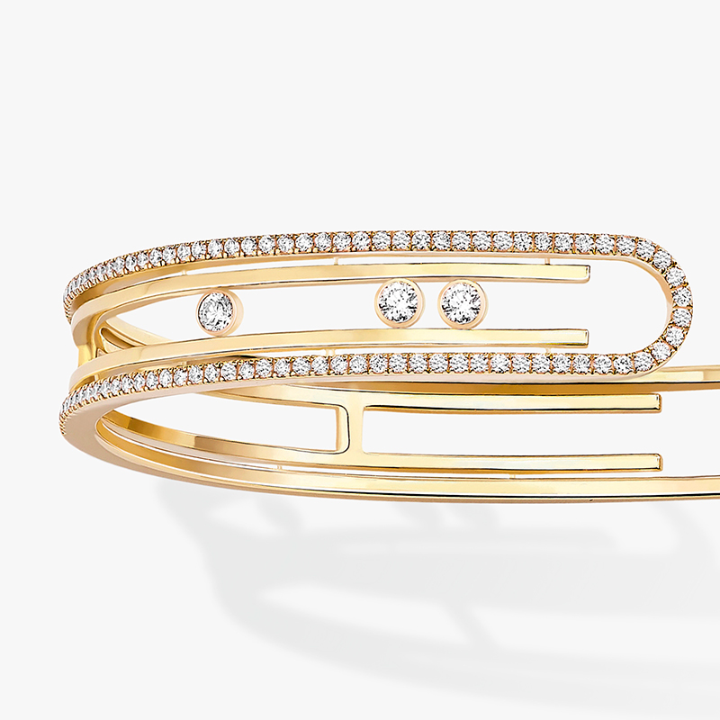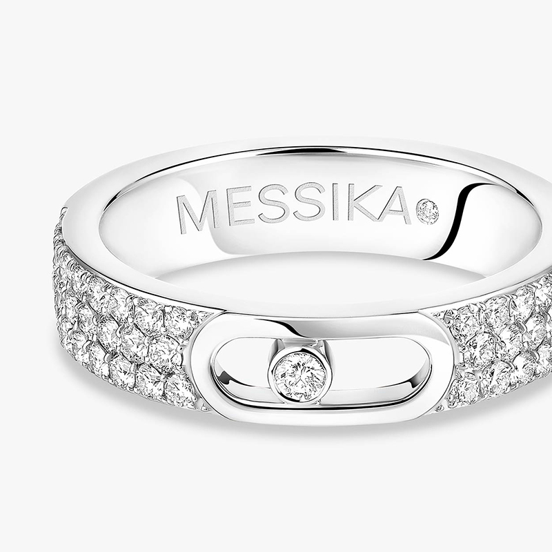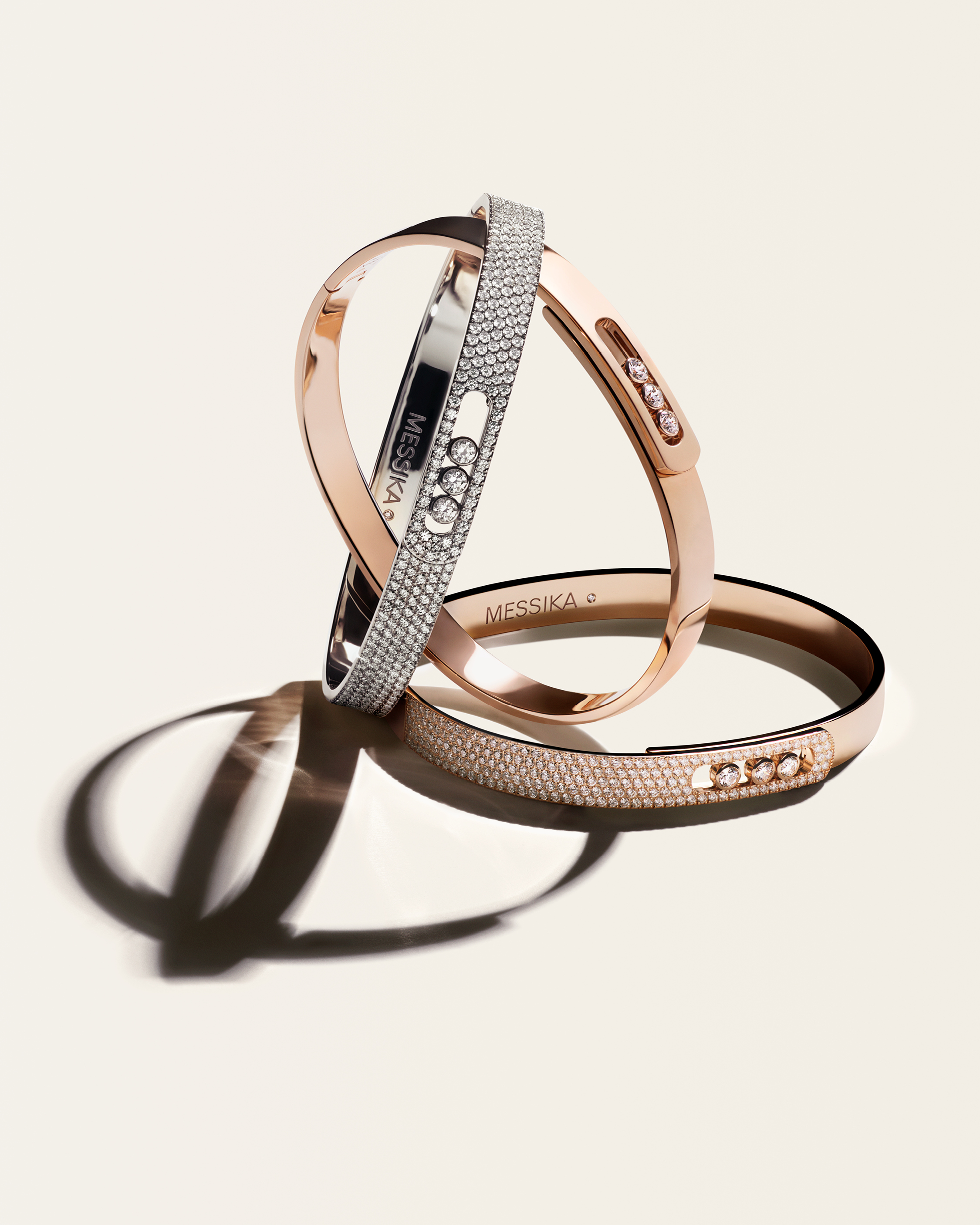 مجموعة مختارة من المجوهرات الخالدة من مجموعة Move Jewelry من Messika. هذه القطع العصرية، المرصعة بالألماس المتحرك، ستضفي إشراقة على حياتك اليومية.