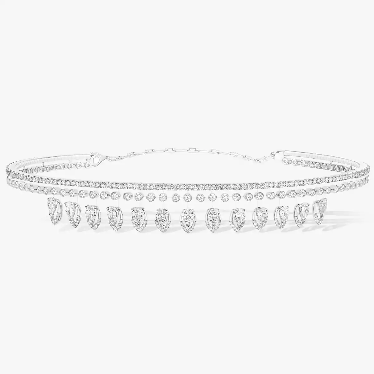 Imagine diamonds sliding through your fingers. Visualise their movement. Their sparkling facets shimmer with every move. The melody of the gems as they gently slide past each other. Experience their preciousness. The thrill of their graceful touch on your skin. Move, Messika’s signature motif, was born out of this highly sensory image.