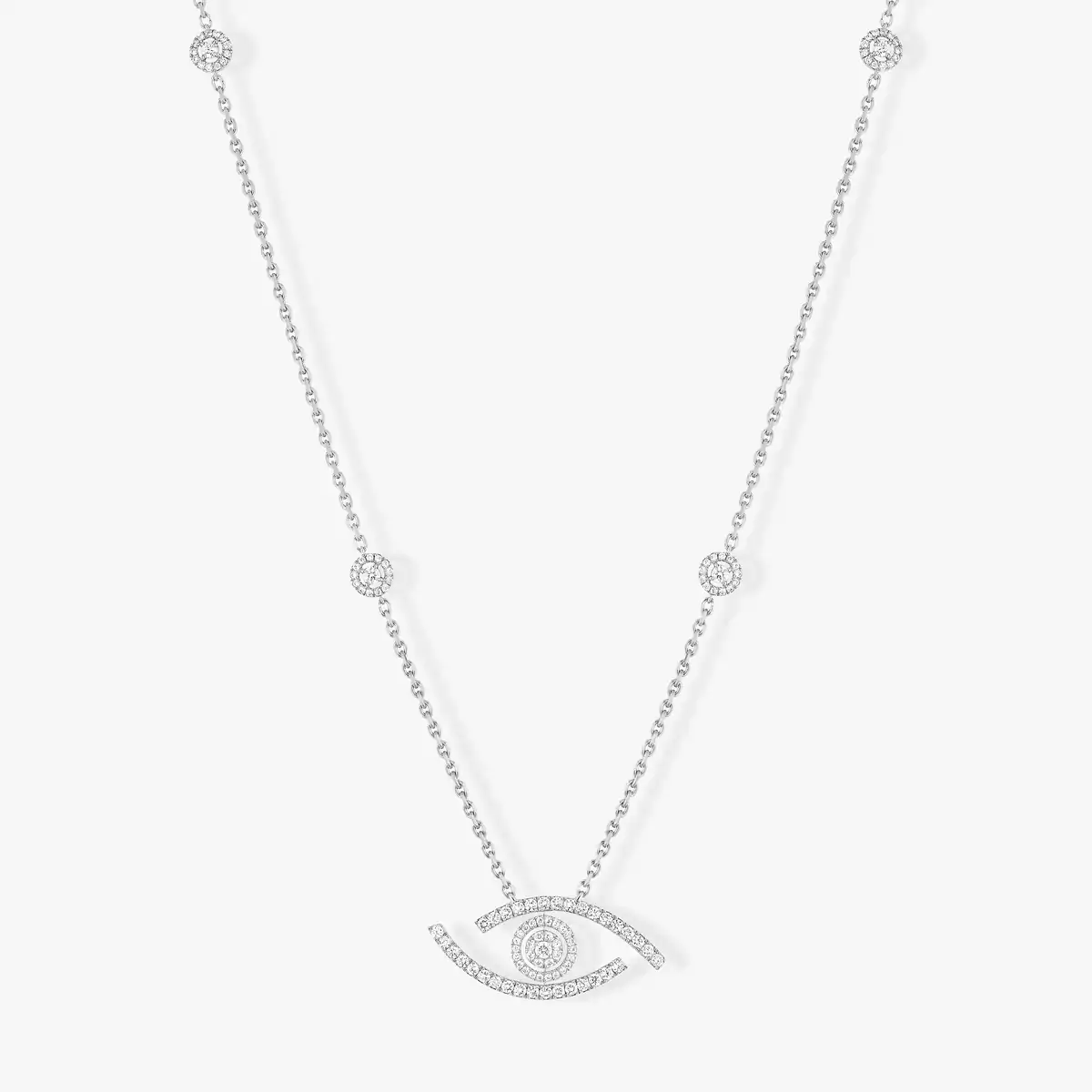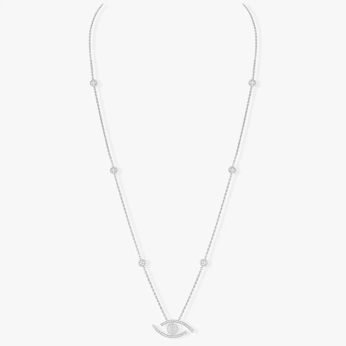 Lucky Eye Long Pavé-Set Diamond Necklace in White Gold | Messika 11570-WG