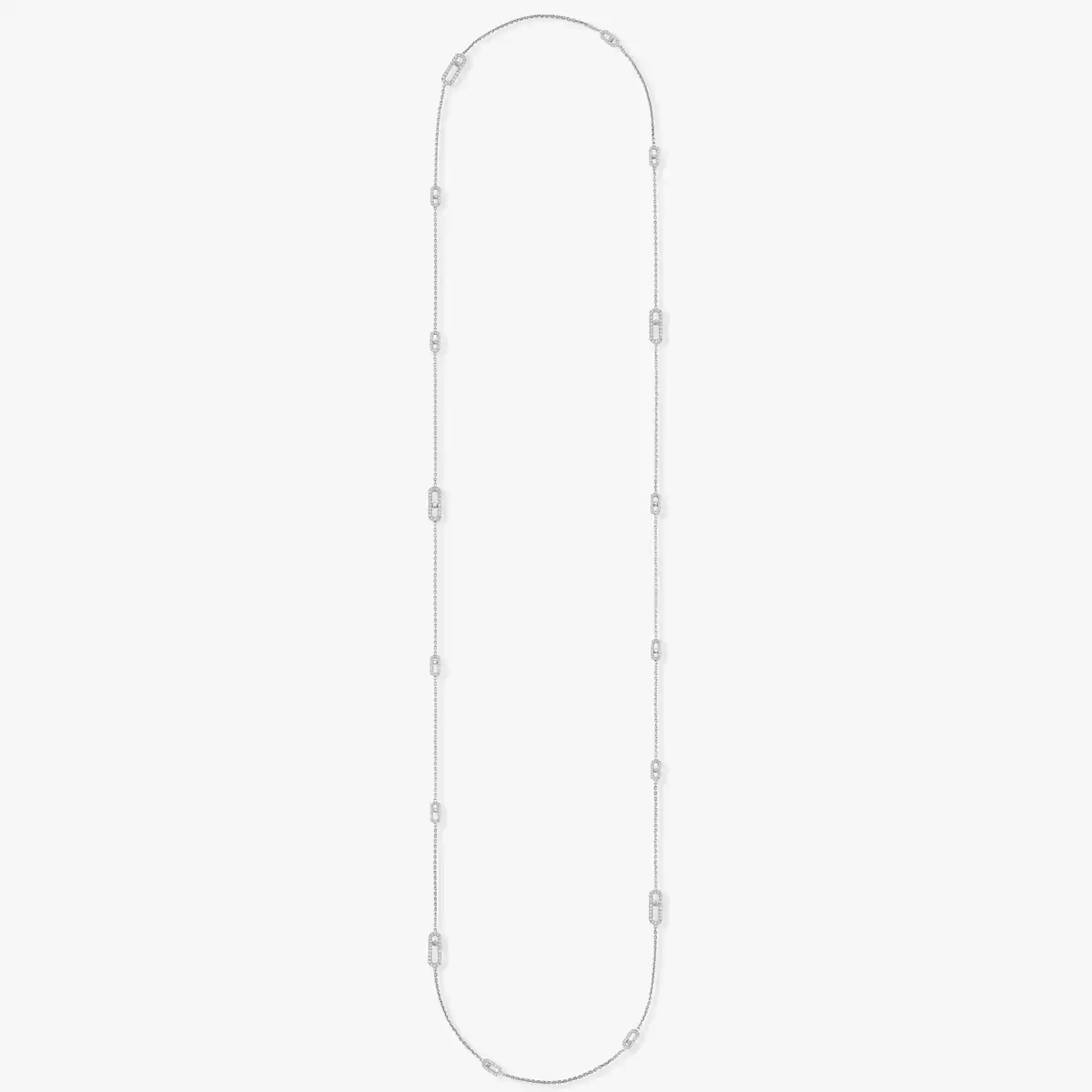 Move Uno Long Diamond Necklace in White Gold | Messika 11324-WG