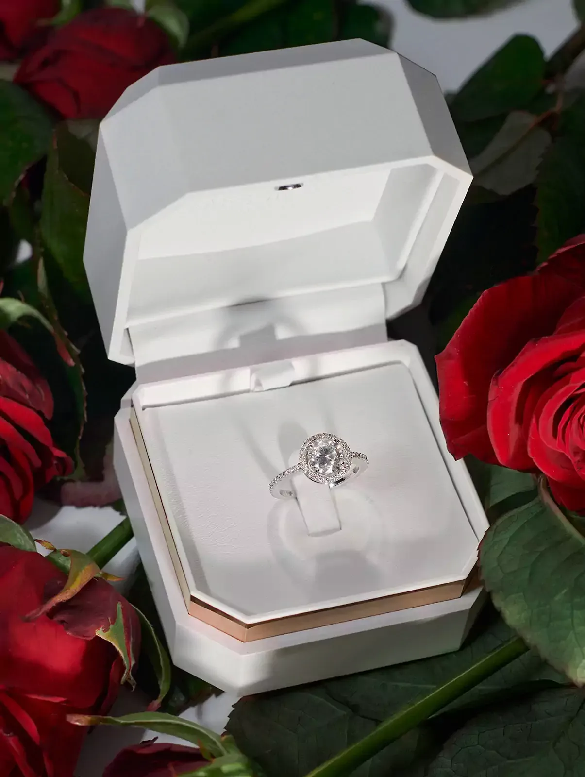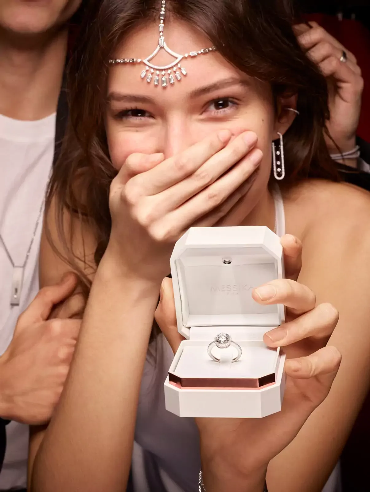 Your diamond engagement ring is presented in a unique and stunning box, which will perfectly enhance your proposal and make it truly unforgettable! So we can guide and reassure you through these different decisions, don't hesitate to visit us in a Messika boutique. Our experts will be delighted to welcome you and help you choose the right diamond solitaire.