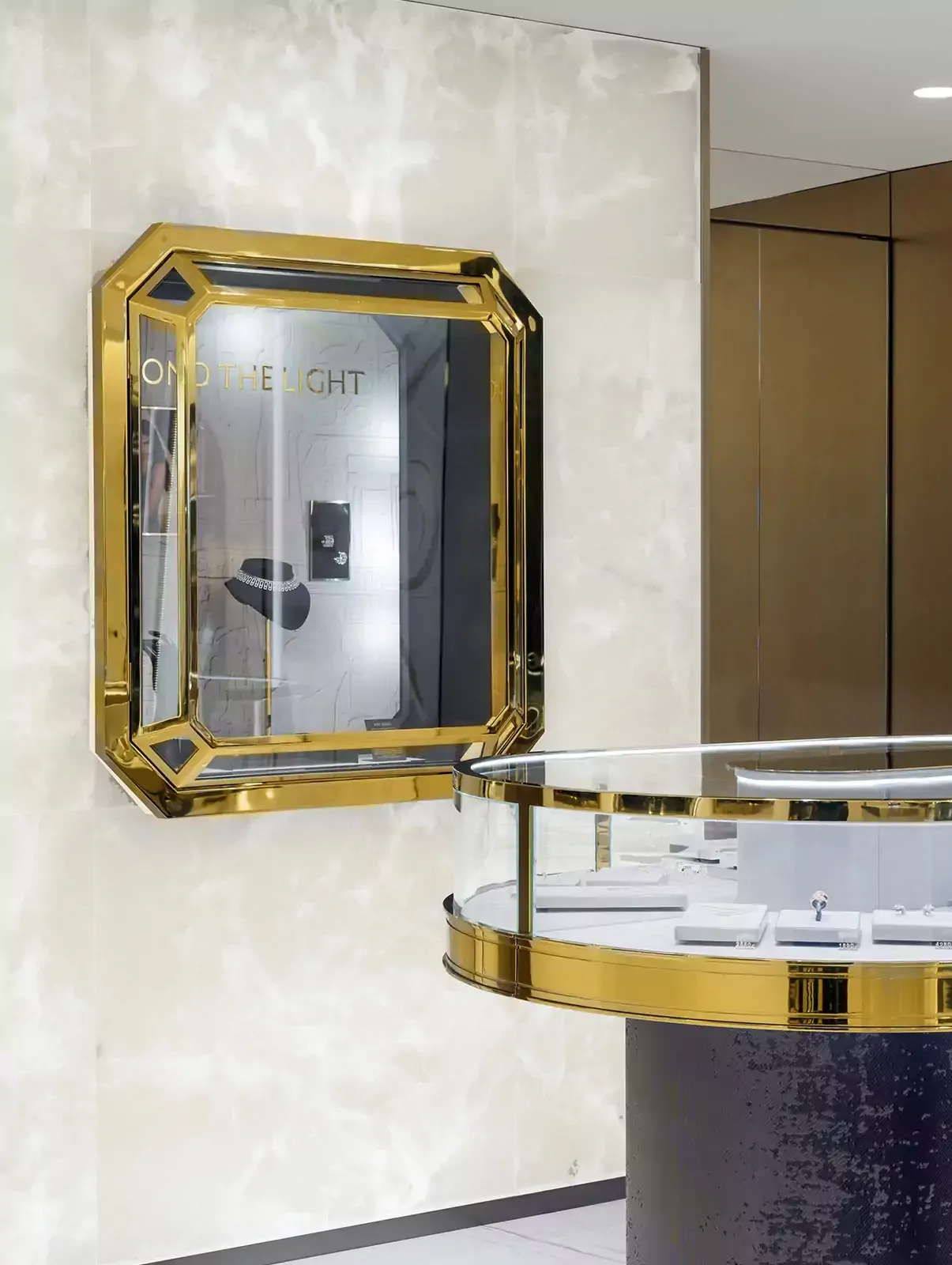Messika梅西卡(E)motion系列中的单钻作品和钻石珠宝专为致敬美好时刻而设计,这些作品于前所未见的珠宝店内展示,显得格外璀璨耀眼。高级珠宝也是如此,以最近的Beyond the Light系列为代表的珍贵款式均悉数陈列于精品店内。