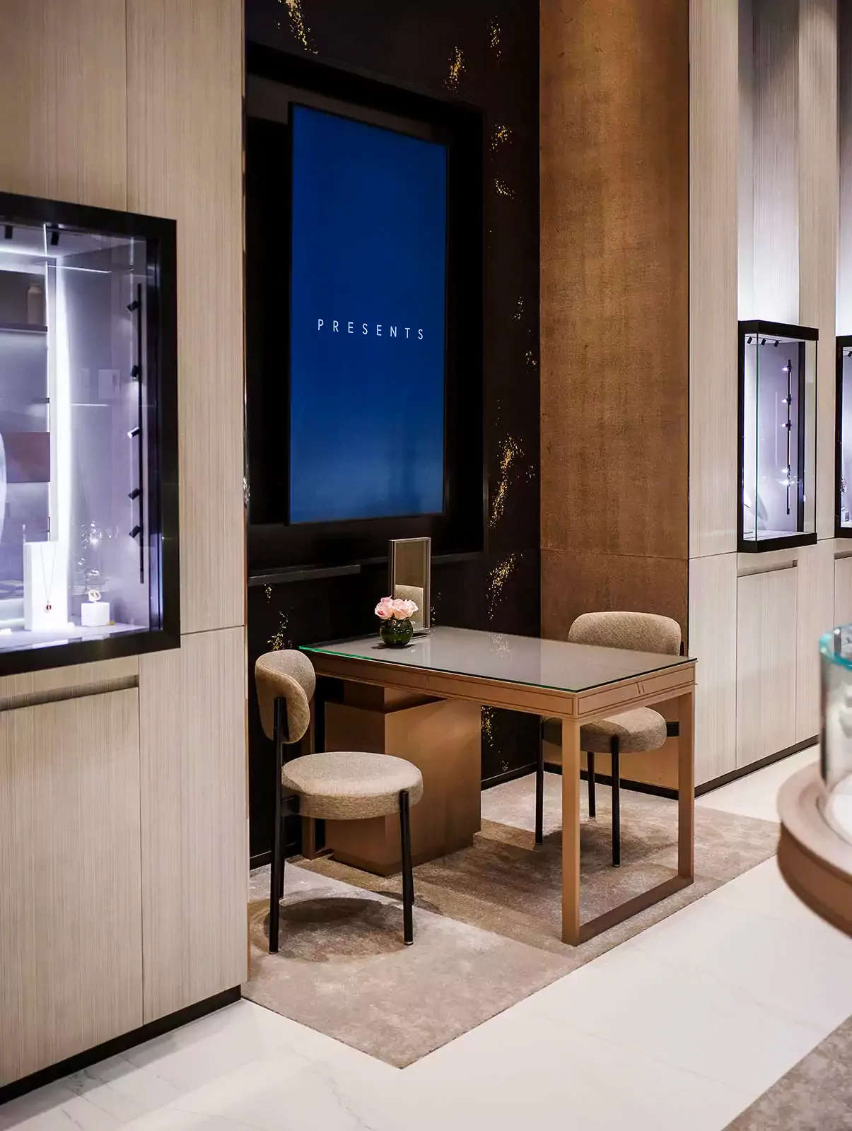 这间占地61平方米的专卖店位于著名的Avenues Mall购物中心街区,由Valérie Messika亲自操刀设计。精品店位于一楼,紧邻其他高端奢侈品牌。从进入的那一刻起,顾客就沉浸于品牌的世界之中。对称的设计,透明的窗户,大理石地板和黑色细节,设计师为她的钻石系列营造出一个梦幻的环境。