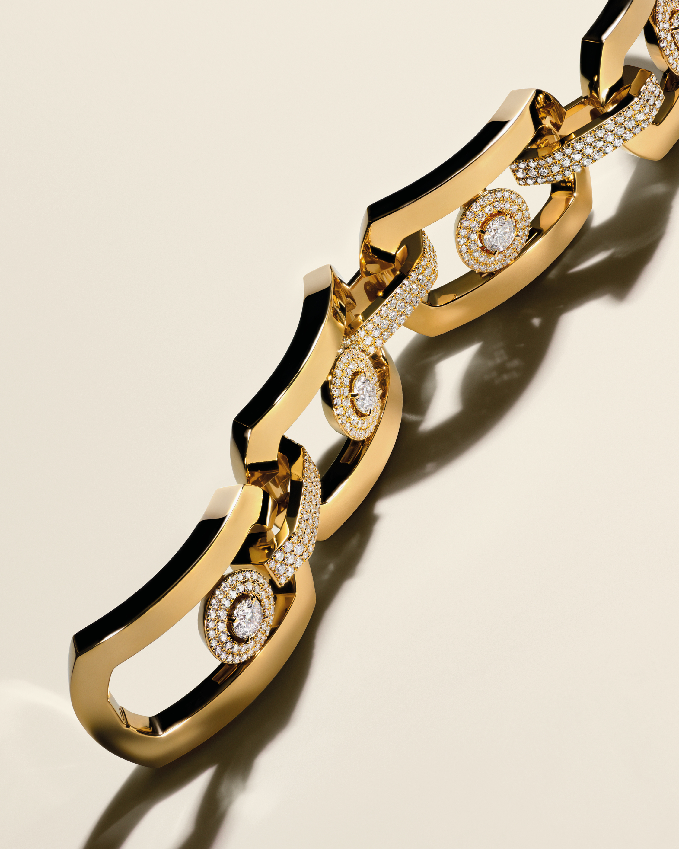 Bibi Breslin’s raw power is intensified in So Move Max. Fei Fei Sun embodies a facet of femininity both graceful and untamed in So Move XL. Rosalieke Fuchs conveys duality in Move Romane: two parallel lines, polished gold and diamond pavé, moving as one. Together, they form a chorus of strength, grace, and brilliance - three voices, one resonance.