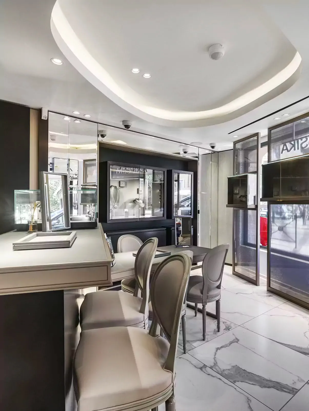 La boutique située à l’angle de la célèbre rue François Sibili et du passage du Port a été imaginée par Valérie Messika, fondatrice de la Maison de Joaillerie et Haute Joaillerie Messika. Dès son entrée, le client est plongé dans l’univers de la marque et vit une expérience unique autour du diamant.