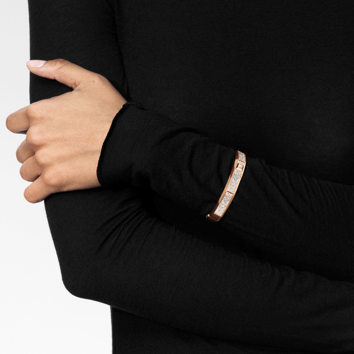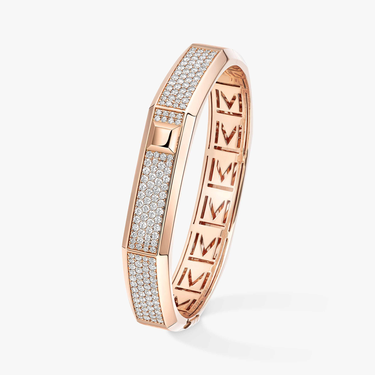 Valérie Messika transpose cette rigueur formelle dans la matière, transformant ce métal solaire en une œuvre sculptée, facettée comme un diamant.
