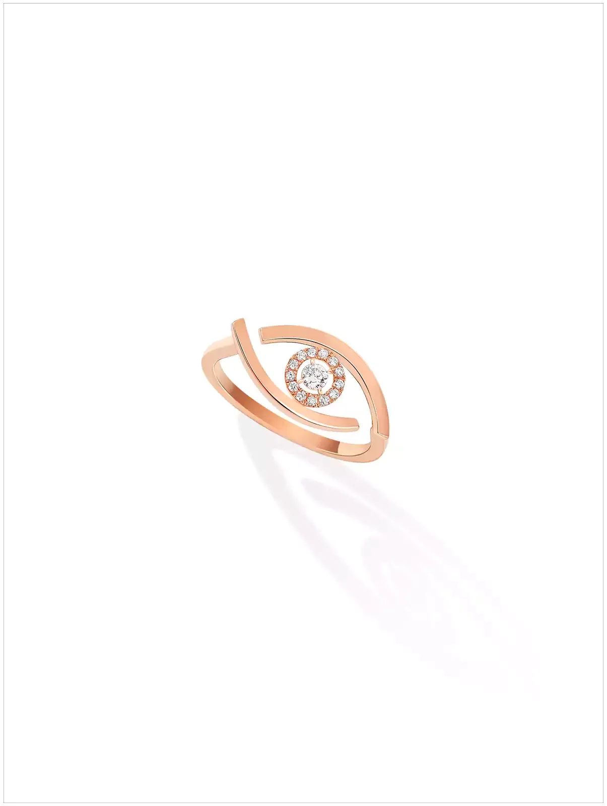 Ein einziges Diamantschmuckstück am Finger und die ganze Welt könnte Ihnen zu Füßen liegen! So könnte man den Diamantring Lucky Eye auch bezeichnen, der in Roségold, Gelbgold oder Weißgold erhältlich ist. Besonders grafischer Luxusschmuck mit leicht geöffneten, überragenden Winkeln und vollendeter Modernität. Das Augenmotiv mit dem Diamanten im Brillantschliff wird hier stilisiert, wobei der Ring mit weiteren Diamanten in Mikrofassung zur Pupille wird. Ein Ring mit starkem Charakter, der wie ein Glücksbringer vor dem bösen Blick schützen kann. Ein gewagtes Schmuckstück für Damen, die einen kühlen Kopf bewahren.