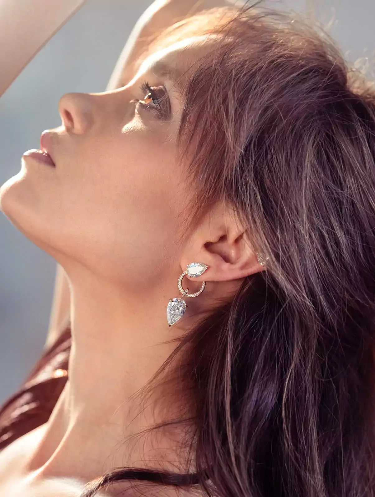 Den anderen spüren, ihn berühren, seine Anwesenheit genießen und seine Energie fühlen. Dinge, die uns unbedeutend erschienen und deren Bedeutung uns erst jetzt bewusst wird. Langsam erwacht die Welt und das Licht scheint wiedergeboren zu werden. Es gibt nur eine Herausforderung: den eigenen Platz in diesem neuen sozialen Ballett zu finden, in dem sich die Beziehung zu anderen weiterentwickelt hat. Die Bewegung, das zentrale Element der Messika Kreation, war noch nie so wichtig wie heute. Als wolle sie wieder lernen, sich zu bewegen und einen Rausch des Lebens zu verkünden, lässt die Designerin in einer Kollektion aus sonniger und farbenfroher Haute Joaillerie Diamanten tanzen. Im Spiel mit Kontrasten, zwischen XXL-Creolen, gelben Diamanten und originellen Steinkombinationen, entwirft sie 20 Luxusschmuckstücke. Wahre technische Meisterleistungen, bei denen die Steine im Tropfenschliff anmutig in ihrem goldenen Ring schwingen, „Rücken an Rücken“ oder in einem zarten Pas de deux schweben.