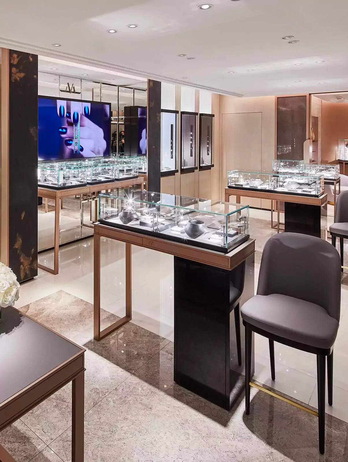 Dieses neue Flaggschiff in Hongkong befindet sich in einem der größten Einkaufszentren der Stadt Harbour City. Mit einer Fläche von 60 m2 handelt es sich um die größte Boutique von Messika in Asien.