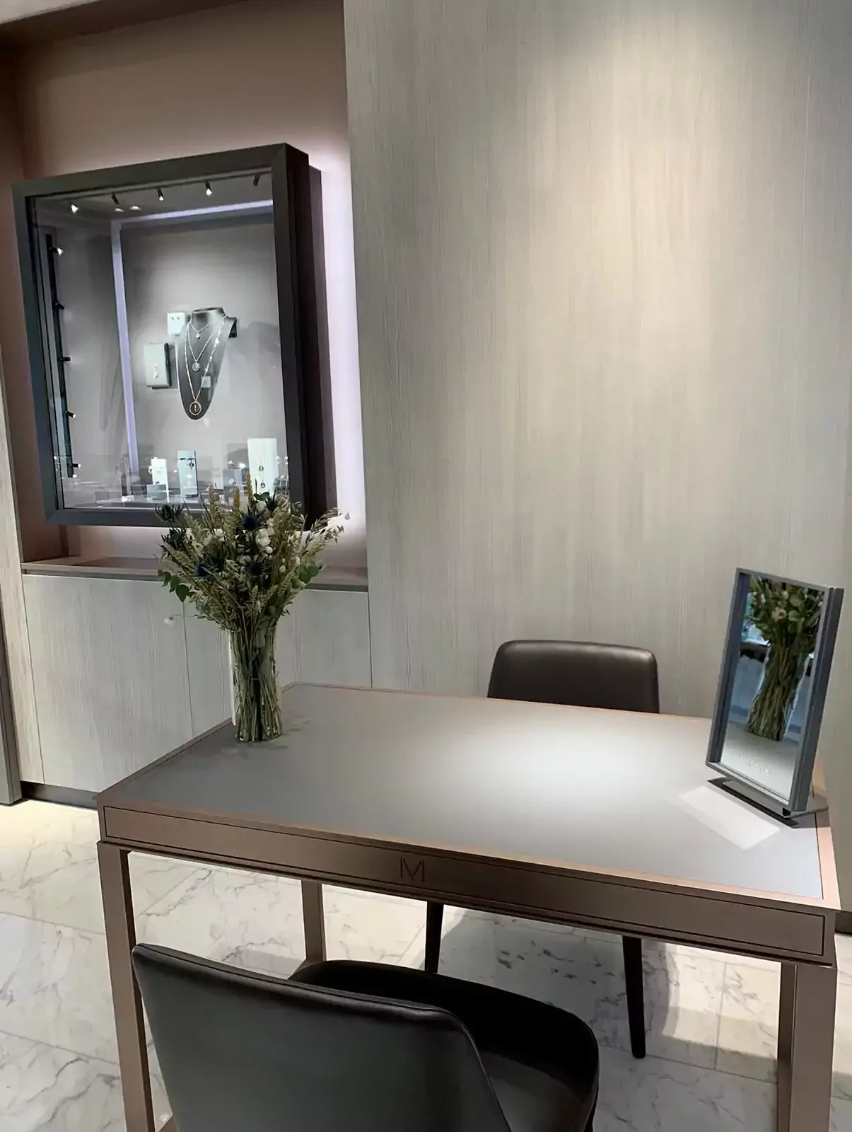 Direkt nach dem Betreten der Boutique taucht der Kunde in das Markenuniversum ein, das einen einzigartigen Blick ins Herz des Diamanten verspricht. Alle legendären Schmuckkollektionen der Maison sind hier vertreten: Move, die unverkennbare Kollektion der Maison, Glam’Azone, My Twin... Ebenso wie die neueste Schmuckkollektion My Move. Die Kunden haben außerdem die Gelegenheit, einige Haute-Joaillerie-Einzelstücke zu entdecken, die von unseren Juweliermeistern kreiert wurden.