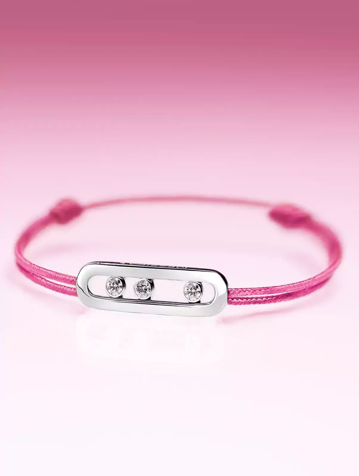Den ganzen Oktober über zeigt sich der Messika-Bestseller in einer Neuauflage im Casual Chic. Das Ergebnis? Ein Armband mit rosa Schnur, das das kultige Baby Move Motiv neu interpretiert. Drei bewegliche Diamanten in einer Kapsel aus Weißgold als Inspiration im Alltag. Dieses brandneue Schmuckstück gesellt sich somit bis Ende Oktober zu den anderen Kreationen der solidarischen Messika CARE(s) Kollektion. Eine Gelegenheit für jeden, sich mit diesem farbenfrohen und engagierten Armband in limitierter Auflage an dem Kampf zu beteiligen. Entdecken Sie das brandneue Armband.