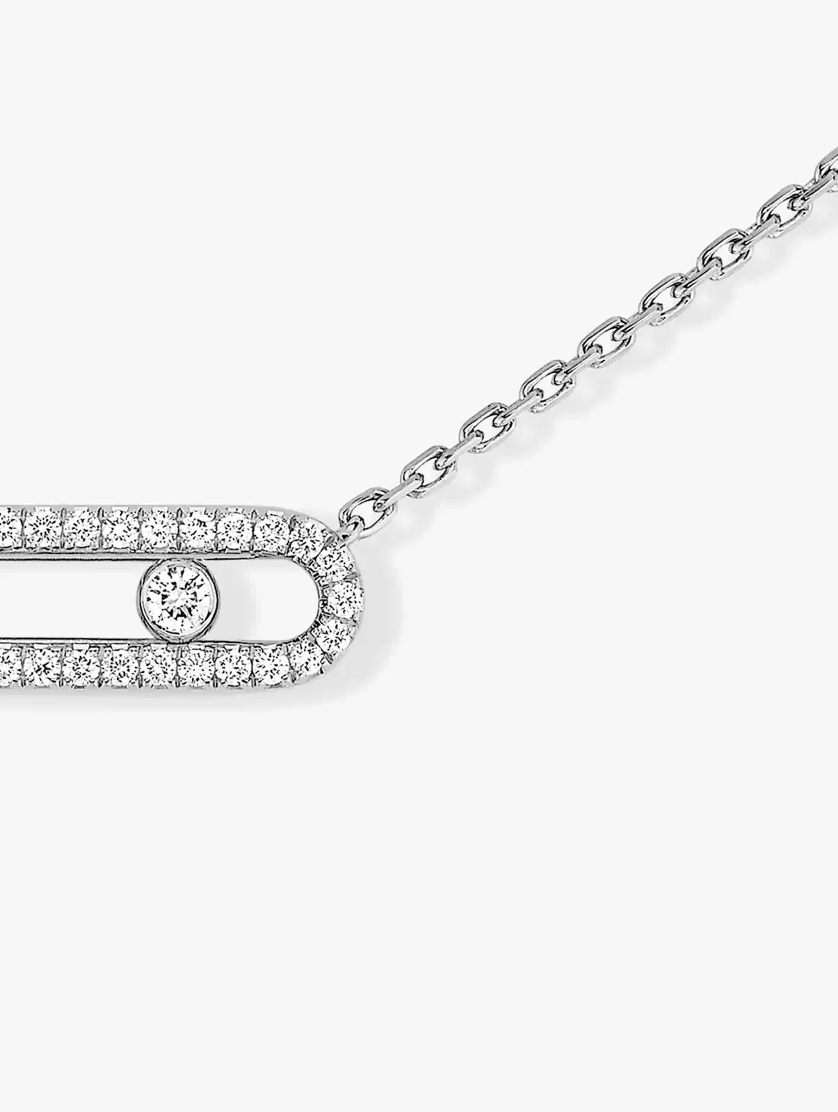 Las joyas de diamantes Move están destinadas a todas las mujeres que buscan una joya innovadora con carácter. Cada una puede elegir entre las distintas colecciones Move Messika hasta encontrar la pieza que la represente y que exprese su personalidad. Tanto las versiones con pavé como sin él, las joyas de lujo Move presentan uno o tres diamantes móviles que se deslizan sobre carriles. El resultado es una creación hipnótica e imponente, guiada por la maestría y el savoir-faire. Así, cada joya Move es una extraordinaria declaración de amor a la más preciosa de las piedras y a la mujer que la acompaña. Una joya de diamantes sin igual, donde la gema y el deleite se convierten en un todo inseparable.