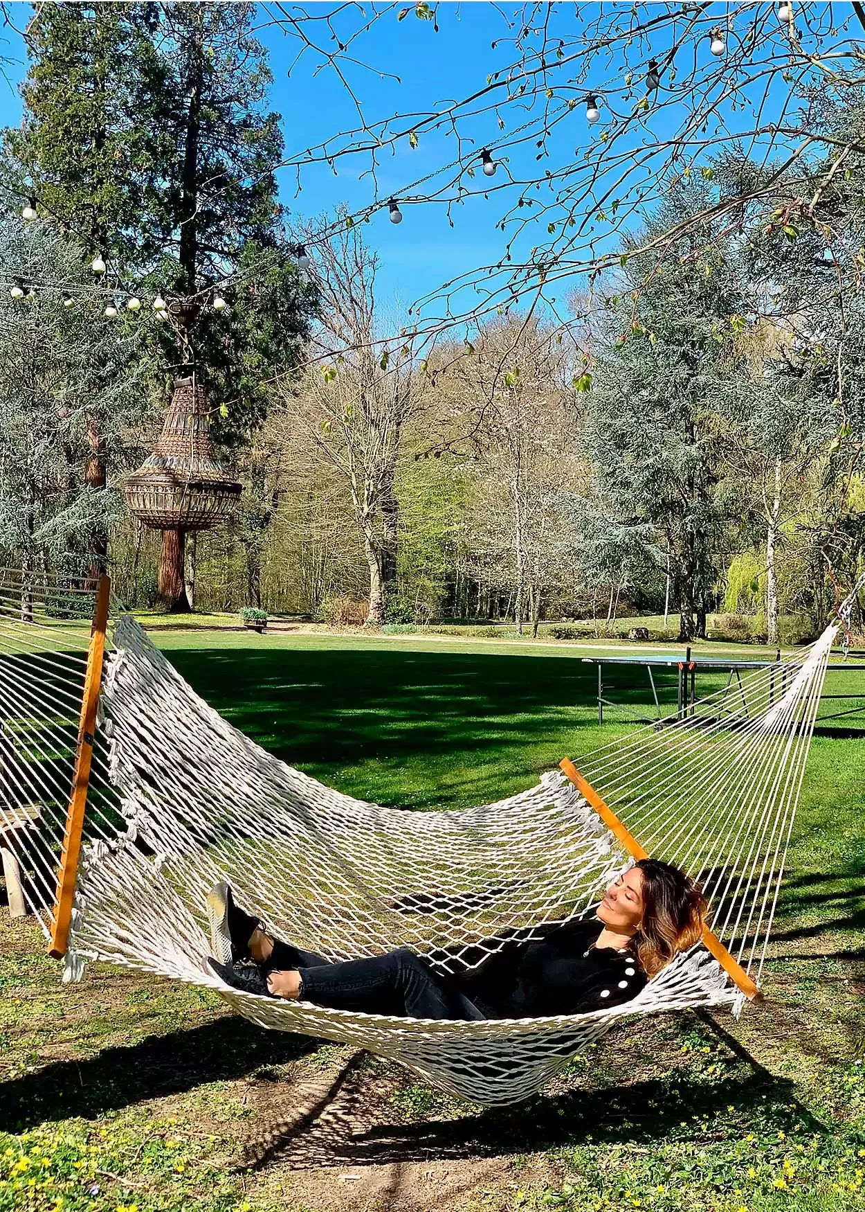 V.M.: "Actualmente me encuentro en mi casa de campo, junto a mi marido, mis dos hijas, mi cuñada y su familia. ¡Estoy muy bien acompañada! Naturalmente, me mantengo muy cerca del resto de la familia y me pongo en contacto con ellos diariamente para que me pongan al día. Estar aquí me permite reponer fuerzas, ya que tenemos un gran jardín y las niñas pueden disfrutar del exterior".