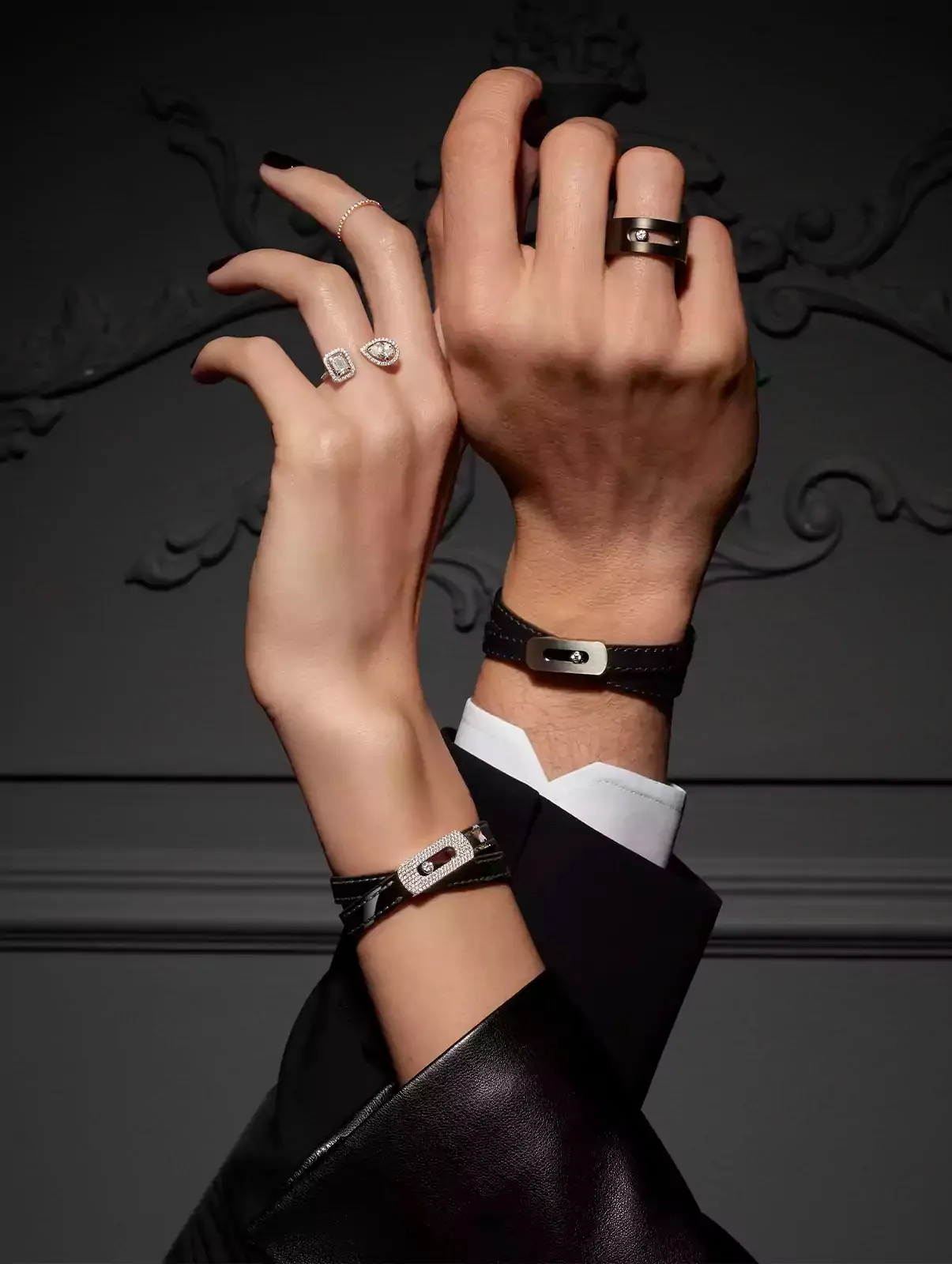 Valérie Messika insufla un aire de frescura a su emblemática colección Move a través de una pulsera de piel para hombre y para mujer. ¿Para ella, para él, para nosotros? La Maison supera un nuevo desafía con la creación de la pulsera de diamante unisex, que se crea y se intercambia. Como quien le coge la sudadera a la persona que ama, tomamos prestada su pulsera de piel My Move. Descubra la pulsera de diamante My Move totalmente personalizable: motivo de oro o de titanio, pulsera de piel mate o charol, más de 300 combinaciones posibles para permitirle crear la joya perfecta.