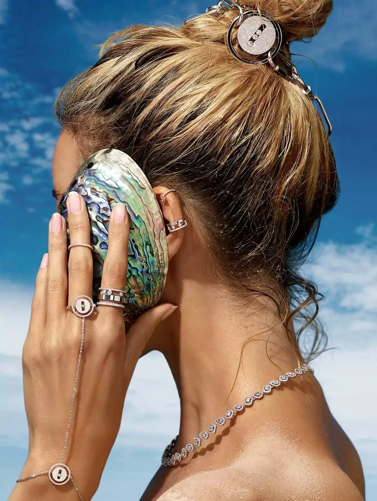 Bajo el sol de las vacaciones, los pendientes Messika se convertirán en un nuevo espacio de expresión donde el lujo y la elegancia se contagian de cierta locura y un toque de insolencia. Atrévase a combinar sus joyas para reafirmar su estilo y dar rienda suelta a su naturaleza indomable. Combine las colecciones de joyería y los pendientes de Messika, alternando su posición en la oreja, para lograr un toque glamuroso y rockero alocadamente moderno. Hippie chic durante el día y femme fatale al caer la noche: gracias a las combinaciones de los pendientes de diamantes Messika podrá realzar de forma exclusiva todos sus looks como desee.