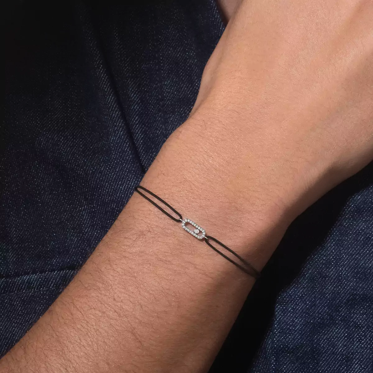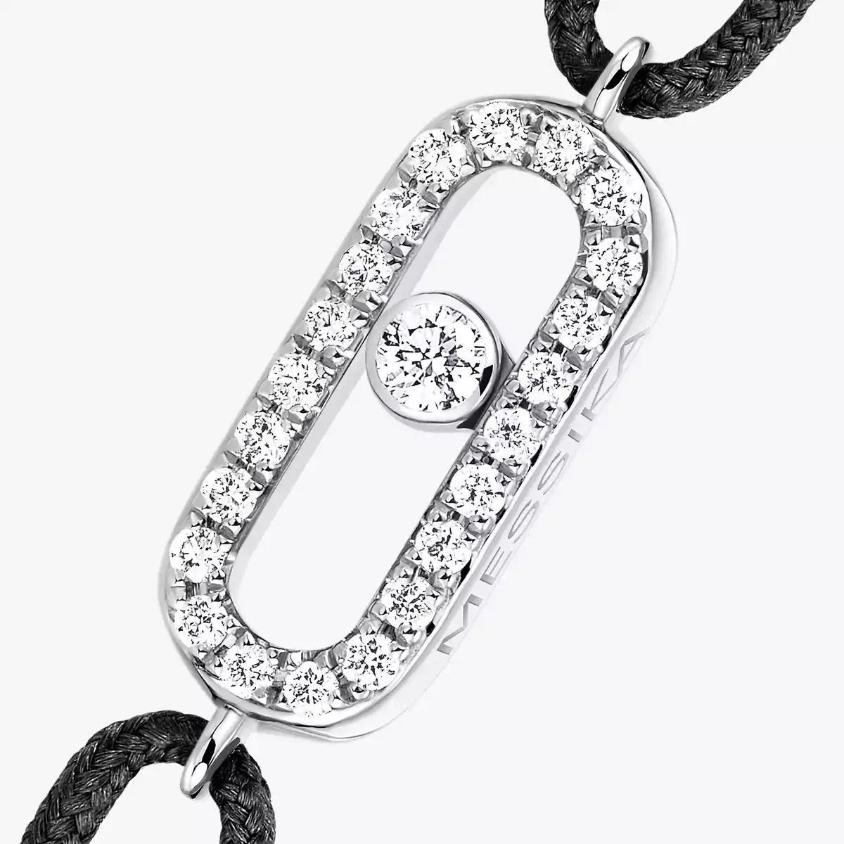Pulsera de diamantes y cordón negro en oro blanco Move Uno | Messika 13209-WG