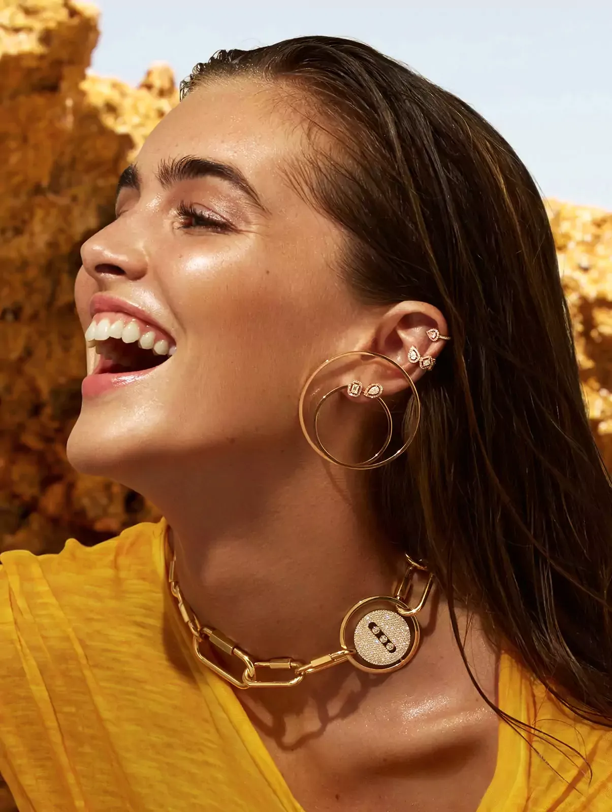 Sous le soleil de vos vacances, les boucles d'oreilles Messika seront un nouveau terrain d'expression où le luxe et l'élégance s’encanaillent d'un grain de folie et d'une touche d'insolence. Osez l'accumulation de vos bijoux pour affirmer votre style et libérer votre nature indomptable ! Mixez les collections de joaillerie et les boucles d’oreilles Messika, leur positionnement sur l'oreille, pour un rendu glam rock validé et follement moderne. Hippie-chic le jour et classieuse femme fatale une fois la nuit tombée, le stacking de vos boucles d'oreilles diamant Messika apposera sa signature exclusive à tous vos looks et à toutes vos envies.