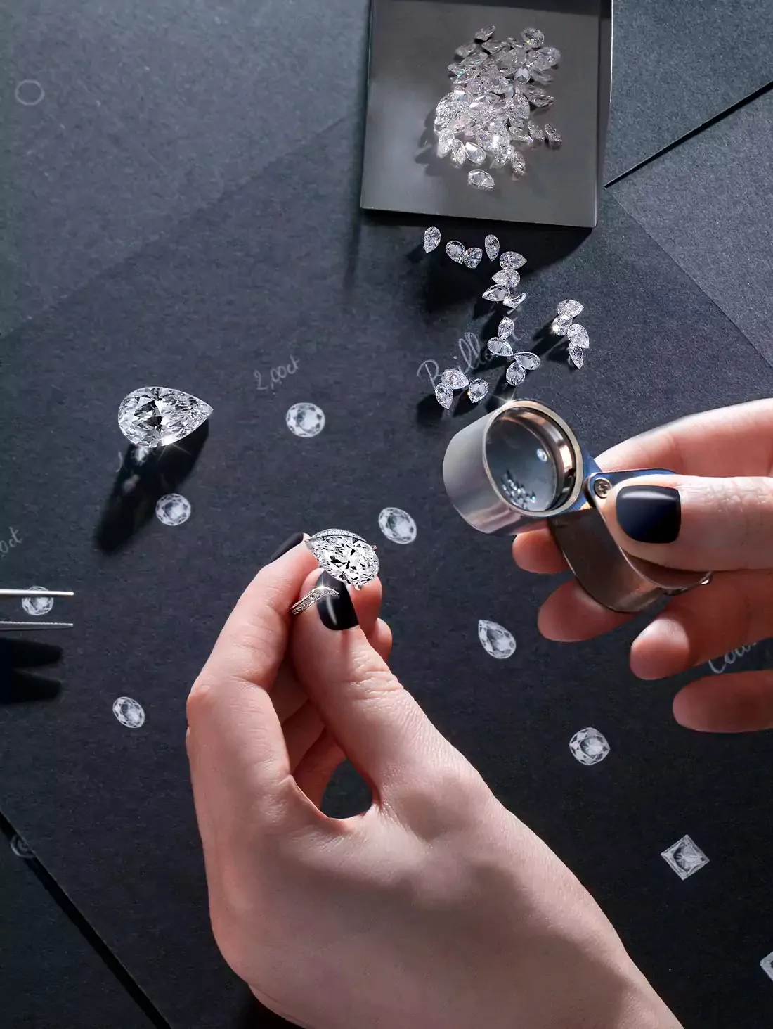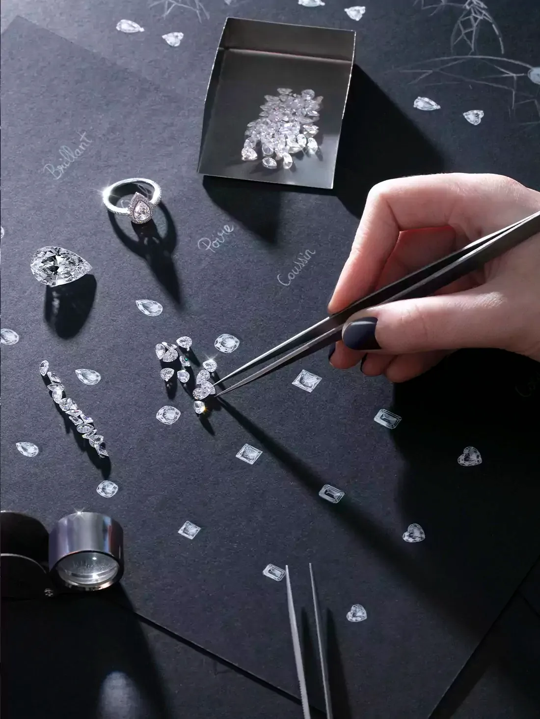 Seul le travail méticuleux de nos sertisseurs experts permet à la pierre de révéler tout son éclat.