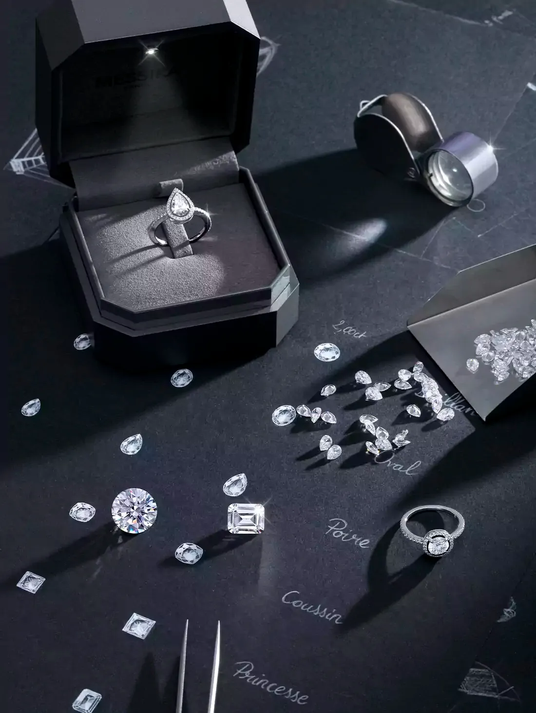 Diamantaire depuis 50 ans, Messika s’emploie à trouver les plus beaux diamants : ceux qui, non seulement répondent à ces critères normés scientifiquement de couleurs et puretés extrêmement exigeants, mais qui par leurs proportions, leurs formes parfaites possèdent aussi ce supplément d’âme, cette beauté harmonieuse qui crée le caractère unique de chaque pierre. Chaque diamant Messika a fait l’objet d’une sélection rigoureuse. Provenant de sources responsables, taillés avec la plus grande minutie, observés et ré-observés à la loupe par les experts gemmologue, seuls 0.5% d’entre eux passeront cette étape et satisferont l’œil Messika pour devenir pierre d’émotion.