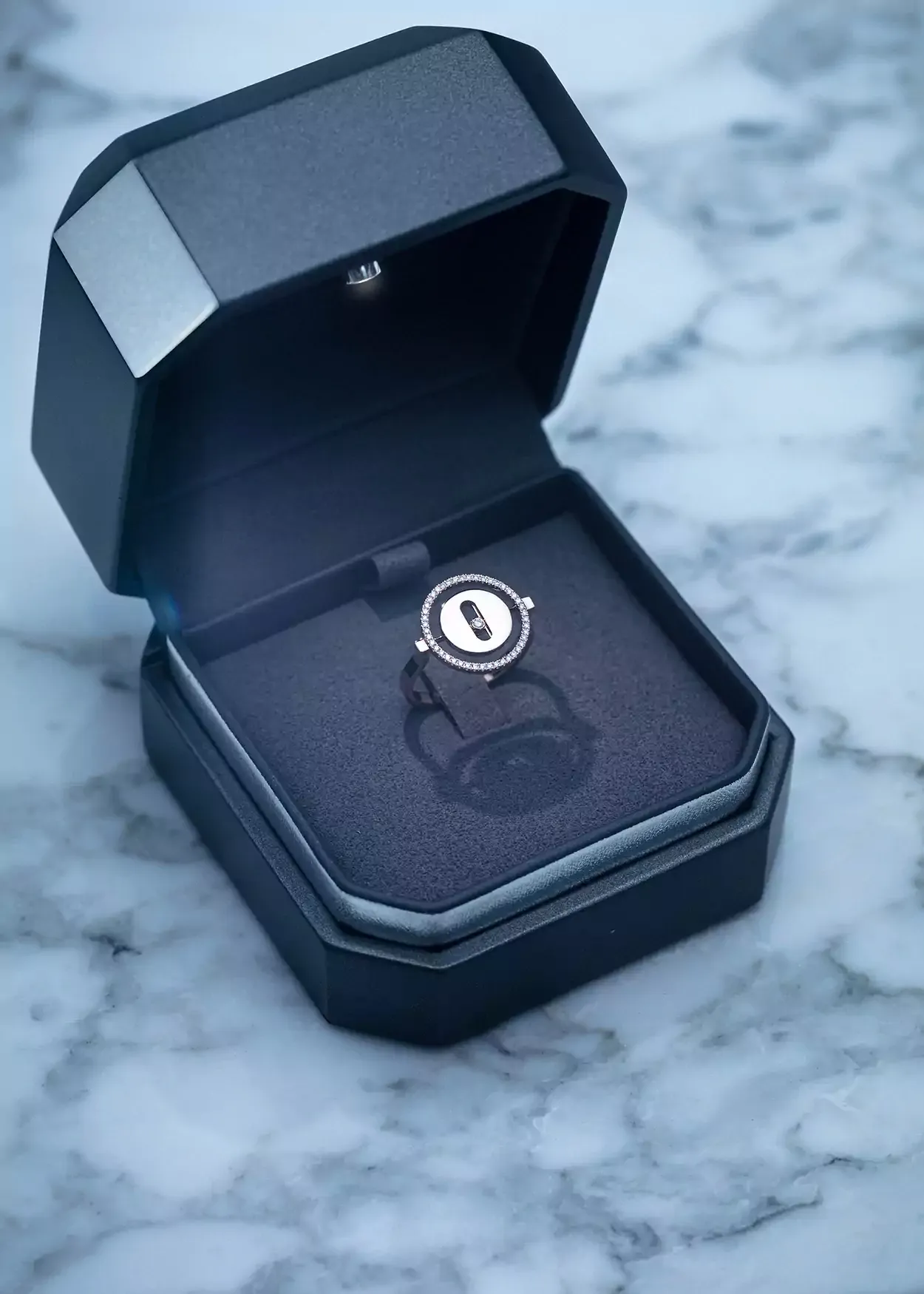 L'oro bianco non esiste in natura. È una lega di oro puro, naturalmente giallo, e altri metalli che gli conferiscono il colore grigio. Nel corso del tempo, a causa dei ripetuti sfregamenti, lo strato di rodio si assottiglia. Per garantire che l'oro sotto lo strato di rodio non sia troppo giallo, le Maison di gioielleria come Messika uniscono le loro leghe con il palladio, un metallo prezioso rinomato per il suo bel colore grigio. Quindi, anche se il tuo anello in oro bianco dovesse perdere brillantezza con il tempo, conserverà il suo colore.