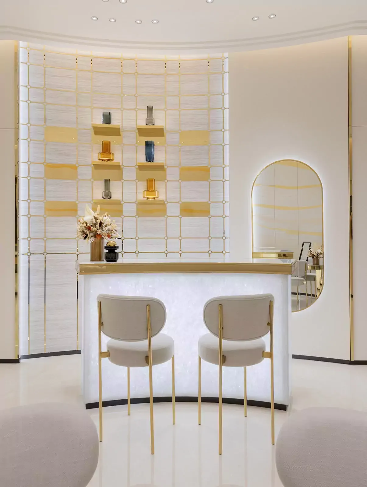 Entrando in boutique, gli invitati saranno conquistati da una sensazione di lusso elevato, che si riflette nel design curvo degli spazi e negli elementi interni meticolosamente selezionati. I clienti che vorranno scoprire le splendide creazioni Messika verranno accolti all’interno di un contesto intimo, con due sale VIP esclusive dedicate alle prove di Alta Gioielleria, oltre che uno spazio bar per rilassarsi. La boutique si estende su un’imponente superficie di 127 metri quadrati e incarna il concetto più moderno di design della Maison, il quale combina facilmente elementi lussuosi in oro giallo con contrasti sorprendenti di nero e bianco. Le pareti e i pavimenti in marmo raffinato trasmettono opulenza e danno il via a un viaggio indimenticabile nel mondo di Messika.