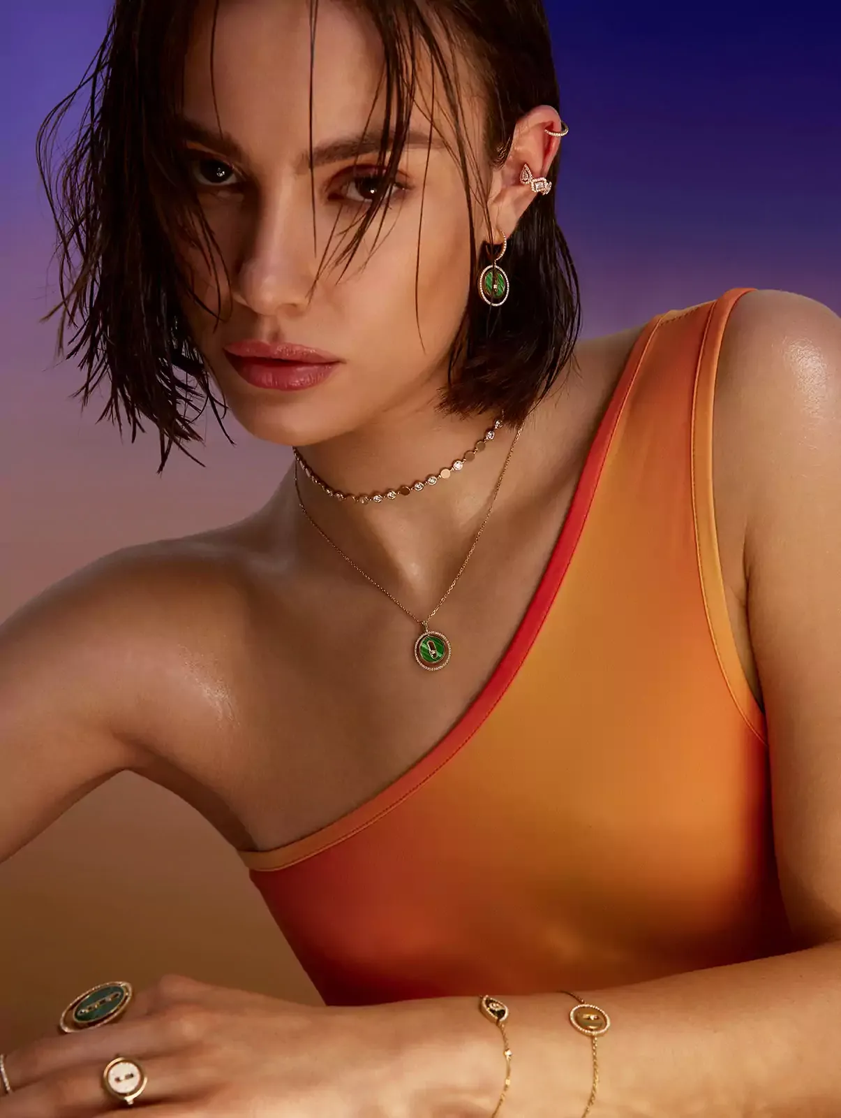 “Iconici, ma mai classici, i gioielli Messika sono gli alleati dell'estate. Sotto il sole e sulla pelle abbronzata, si tingono di una vivacità e di una brillantezza inedite”.