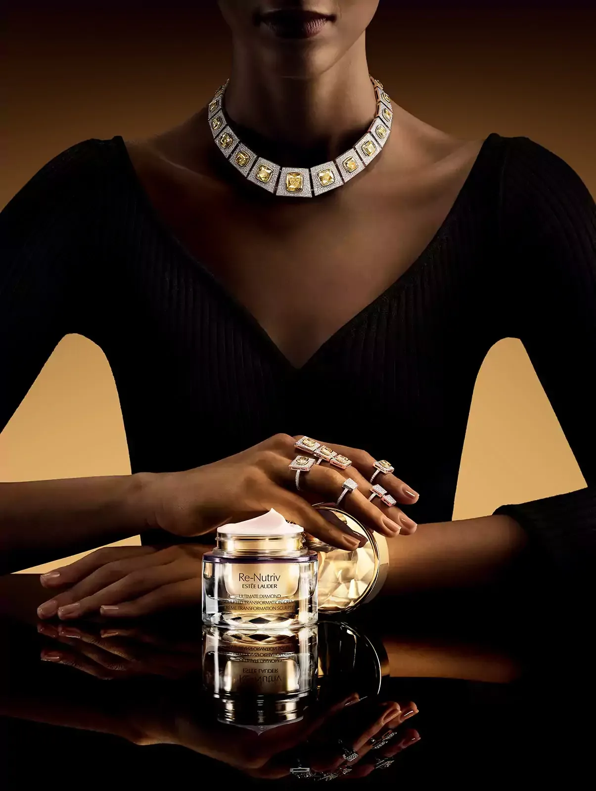 エスティ ローダー x メシカのコラボレーションは、エスティ ローダー リニュートリィブ コレクションを成功に導いた究極のグラマラスを現代的に表現したものです。今回のパートナーシップは、ダイヤモンドという共通のインスピレーションによって誕生しました。ダイヤモンドは、リニュートリィブ ダイヤモンド コレクションの象徴でもあり、メシカ パリの格別なクリエイションの核を成す存在でもあります。ダイヤモンドは、大いなる力と長寿の象徴。その曇りのない輝きは2つのメゾンが体現するものであり、比類なきラグジュアリーの感情を引き起こすものです。永遠の価値を持つダイヤモンド同様、特許を取得したリニュートリィブのフォーミュラは、若々しさを長持ちさせる力を肌にもたらし、細胞の老化の進行を目に見える形で遅らせ、時間を再び自分のペースに取り戻す方法を提示します。