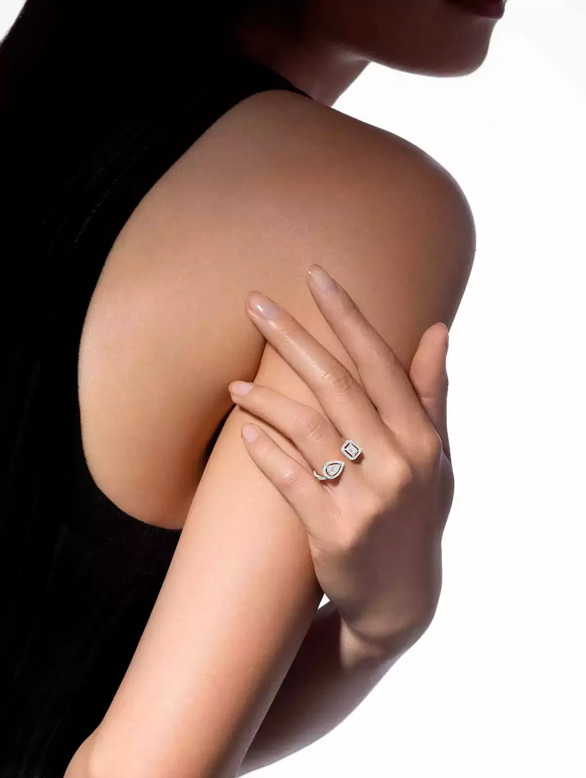 今回銀座三越のオープンを記念して、ファイアリー(Fiery)コレクションより新色のピンクゴールドが先行発売となります。ソリッドゴールドで縁取り、両側にカットを施したペアシェイプカットダイヤモンドは、伝統を超越。受け継がれるヴァレリー・メシカの匠の技で磨き上げたダイヤモンドが高貴な佇まいに、さらには自信と生命力に満ちたシャープなデザインが特徴です。