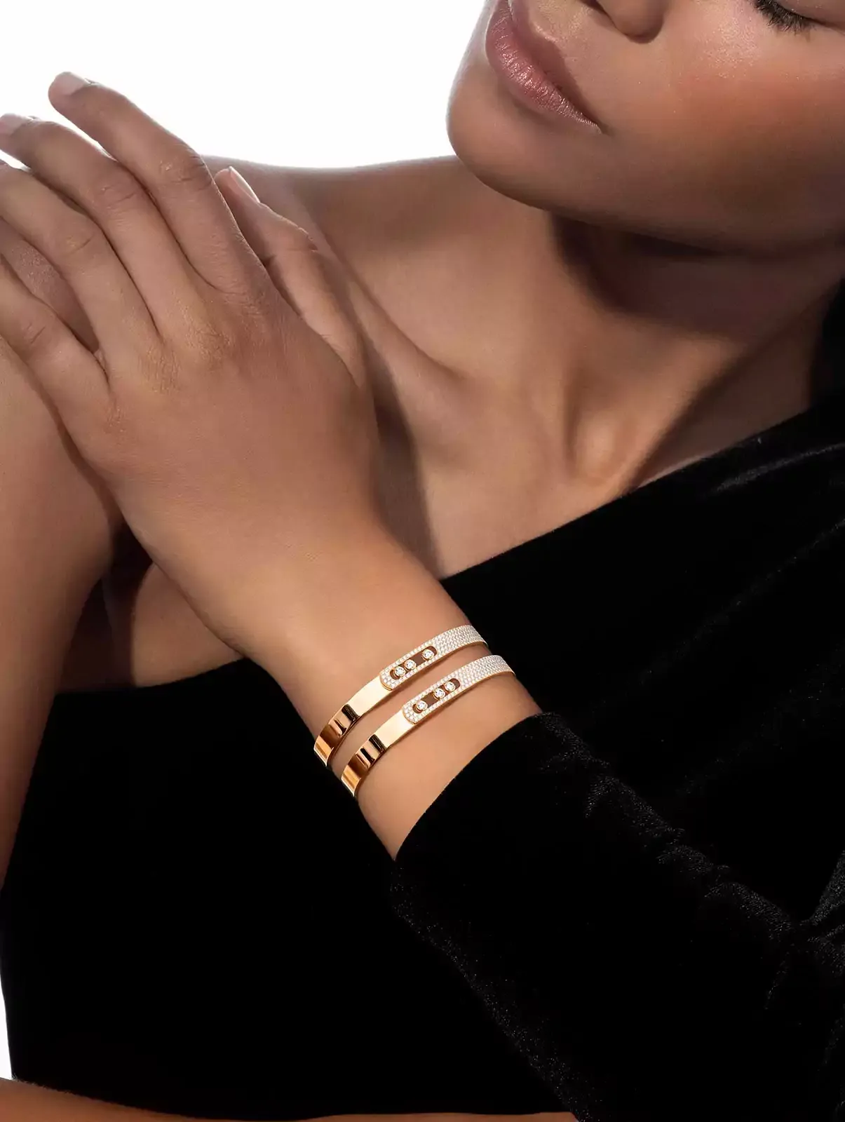 上質なメシカ ダイヤモンド ジュエリーで洗練された装いを演出。おすすめは、《D ヴァイブス》コレクションのミニ クレオールのペア。力強いグラフィックが特徴の精緻なダイヤモンド イヤリングです。このイヤージュエリーに《ムーヴ ウノ》 アイコニック リングを組み合わせれば、手元に気品あふれる輝きが生まれます。ダイヤモンドのトータルルックを完成させるには、《スキニー》ダイヤモンド ブレスレットをプラス。第二の肌を思わせるジュエリーは、他の《スキニー》ブレスレットやメシカ ダイヤモンド バングルとの重ねづけに最適です。