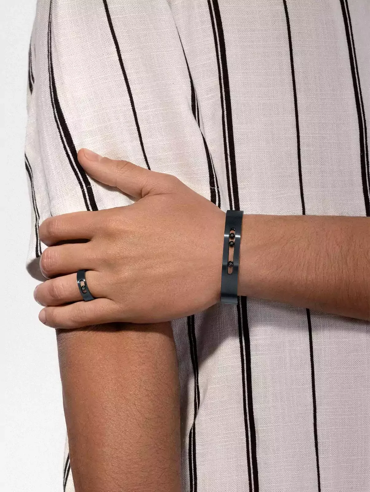 モダニティ、快適さ、耐久性、エレガンスがひとつのジュエリーに昇華されたメシカのラグジュアリーな男性用ダイヤモンドとチタン製ジュエリー。どの観点からジュエリーを選ぶべきか迷う必要がなくなります。メシカのコンセプトが昇華された男性向け ダイヤモンドとチタン製ジュエリー。まとう人の個性をあらわにし、ほかに似るもののないその人のオリジナリティを解き放ちます。首元、手首、手元を彩るラグジュアリーな男性向けダイヤモンド・チタン製ジュエリー。あなたらしいスタイルを表現する調和にあふれたジュエリーをまとってください。ジュエリーがまとう人も個性やムードを雄弁に語ります。