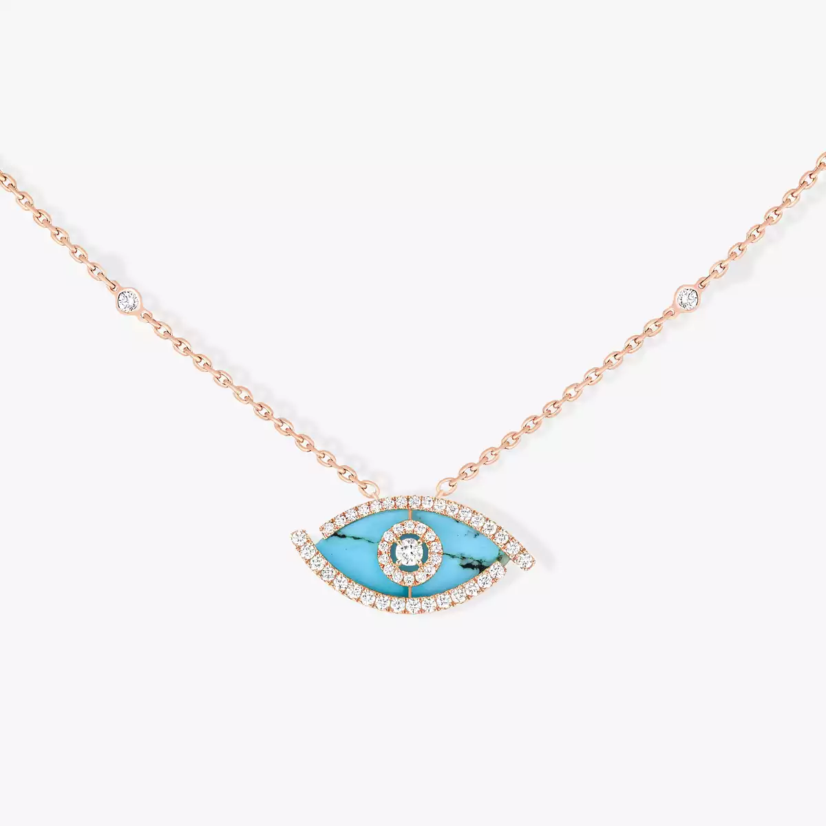핑크 골드 및 터콰이즈 럭키 아이 다이아몬드 네크리스 | 메시카 12952-PG