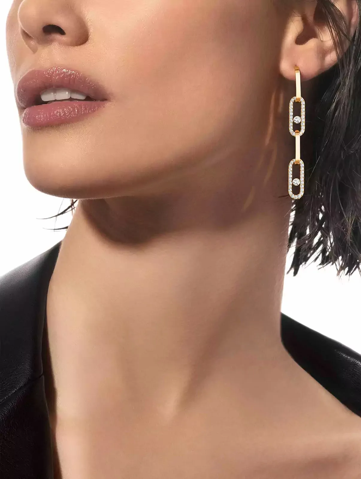 무브 링크 골드 및 다이아몬드 펜던트 이어링에 빠져들어 더욱 고급스러운 룩으로 내면의 록 감성을 표현해보세요. 무빙 다이아몬드가 장식된 섬세한 주얼리는 일상 속 오피스 룩뿐 아니라 저녁의 칵테일 파티에서도 화려한 존재감을 자랑합니다. 더욱 돋보이는 룩을 연출하고 싶다면, 쏘 무브 파베 투-핑거 링을 착용하여 손가락에 다이아몬드의 눈부신 반짝임을 더하세요. 중앙에 무빙 다이아몬드가 장식된 강렬한 주얼리는 대담한 XXL 감성이 돋보이는 룩을 완성합니다!