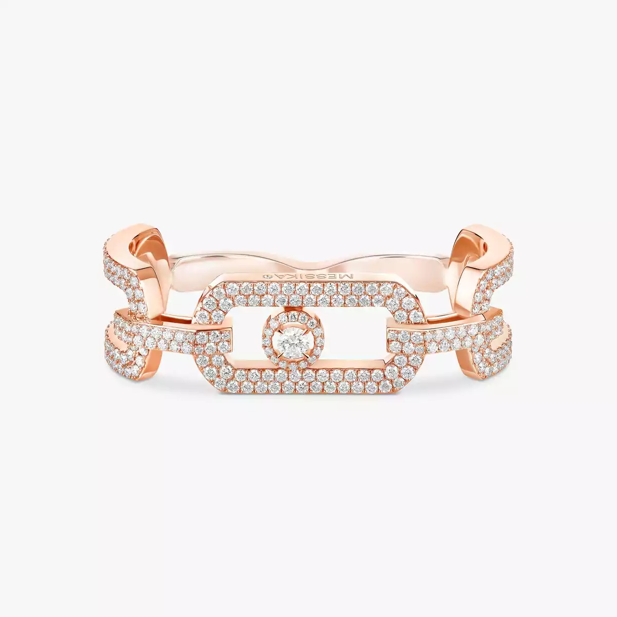 핑크 골드 쏘 무브 투-핑거 다이아몬드 파베 링 | 메시카 13185-PG