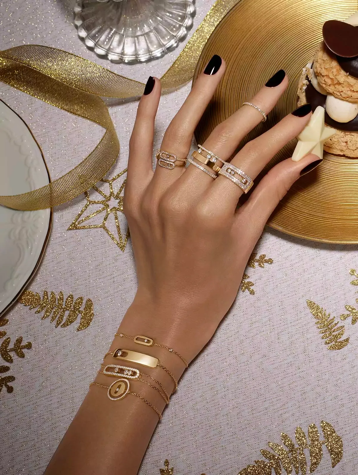 НАША ПОДБОРКА БРАСЛЕТОВ Сегодня вечером Вы – королева, чьи запястья украшены восхитительными драгоценными камнями и золотом, идеально подходящими к Вашему образу. Покажите себя в полном блеске, сверкайте роскошными культовыми браслетами из золота и бриллиантов. Поддайтесь искушению многослойности. Для каждой из своих коллекций Валери Мессика представила различные ювелирные украшения, утонченные и эффектные одновременно, которые прекрасно сочетаются друг с другом и дают Вам простор для творчества. Кружась в упоительном танце роскошных драгоценностей, Ваши руки и запястья будут выглядеть как никогда изысканно. С наступающим Новым годом!