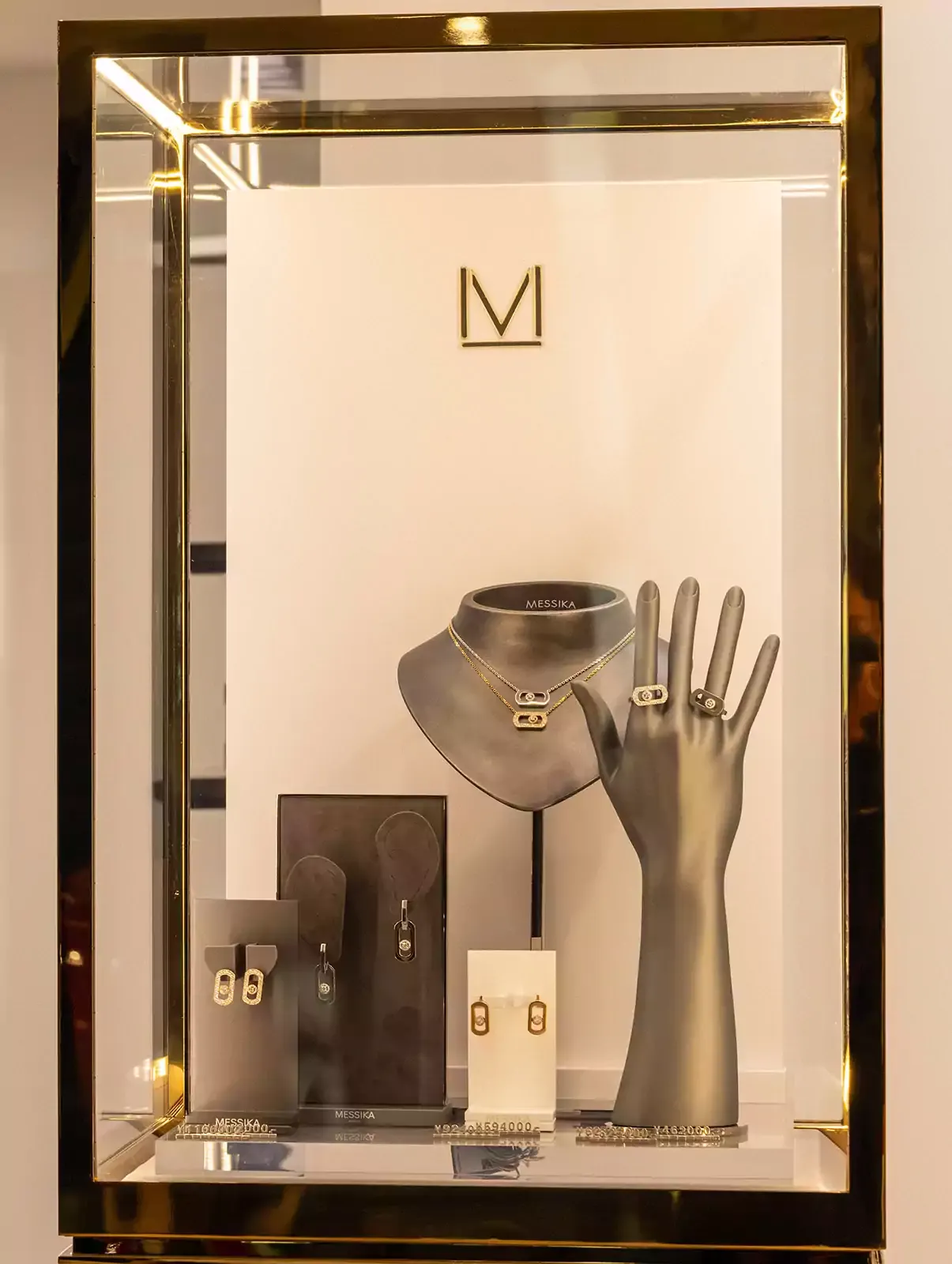 Его интерьер вдохновлен фирменными подвижными бриллиантами Messika. Помимо знаковых ювелирных украшений, в бутике будут представлены последние творения с бриллиантами от Messika из коллекций So Move и Move Link. Белый, черный и золотой цвета подчеркивают роскошный характер Дома и дарят незабываемые эмоции посетителям.