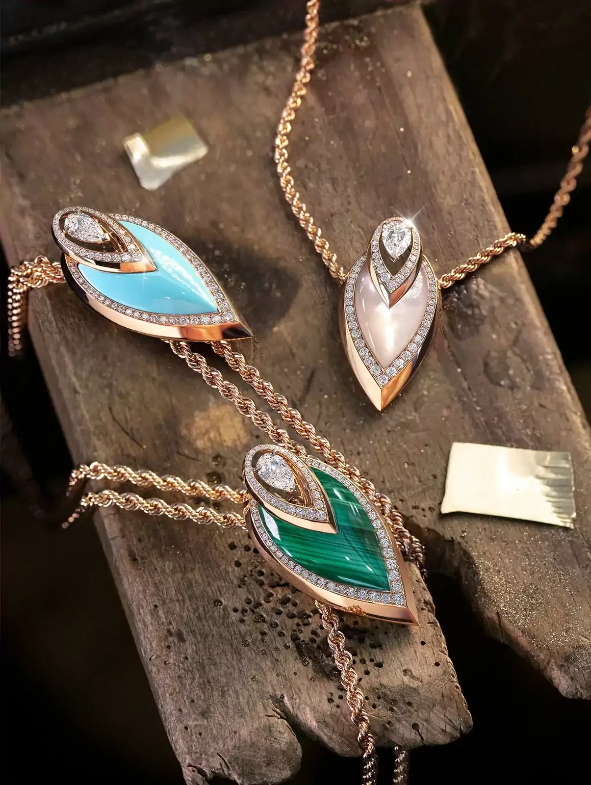 Малахит, белый перламутр, бирюза и оникс сияют в роскошных бриллиантовых украшениях новой коллекции By Kate Moss, поражая нескончаемой гаммой цветов. Благодаря смелым дизайнерским решениям и гармоничным сочетаниям текстур и разных оттенков золота и материалов, а также особому вниманию к деталям, рождается невероятная коллекция Высокого ювелирного искусства, изделия которой смогут украсить не только вашу шею, мочку уха, запястье или пальцы, но и лоб, руки, уши и другие части тела. Валери Мессика и Кейт Мосс расширяют границы возможного, предлагая новые идеи о том, как можно носить эти украшения.