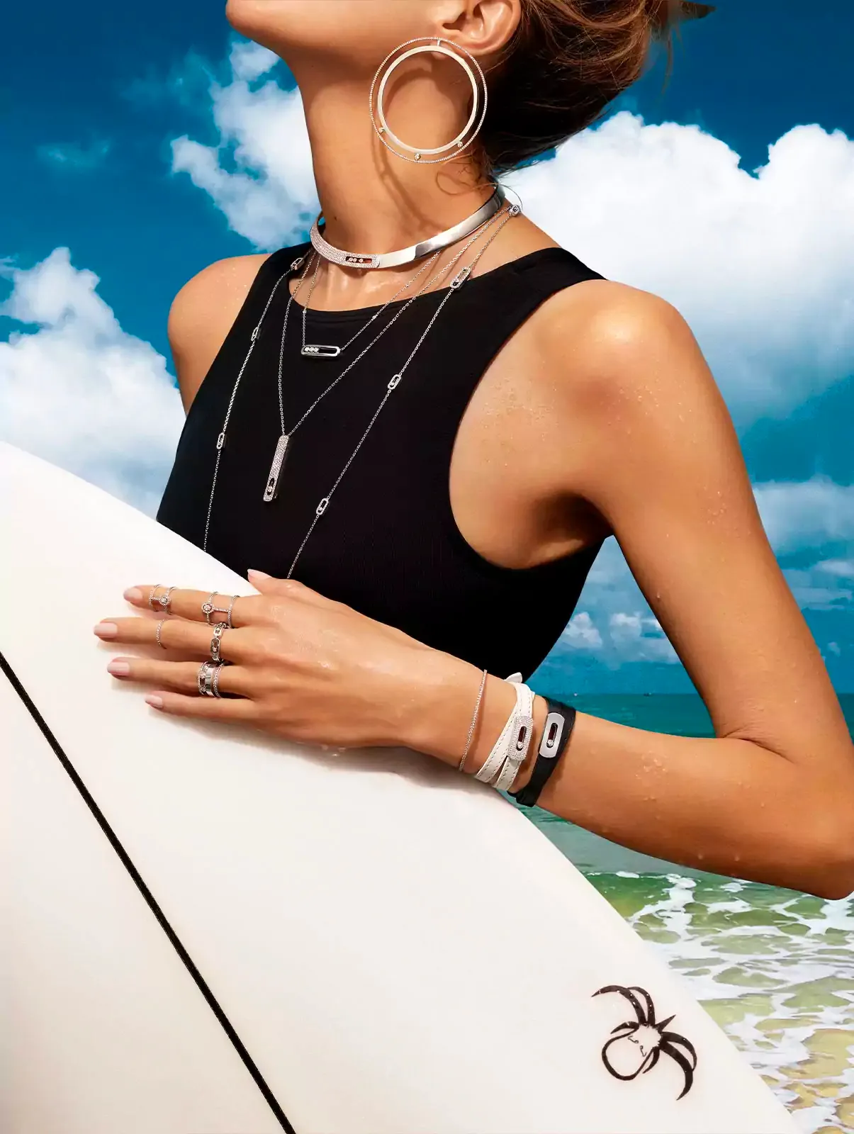 Украшения Messika – это отличный способ подчеркнуть ваш великолепный летний загар. Хотите выглядеть выразительно и стильно? Остановите свой выбор на оригинальном и эффектном украшении с бриллиантами. Почувствуйте вкус лета и насладитесь коллекциями современных, женственных и элегантных ювелирных творений Messika. Предлагаем вам несколько советов по выбору роскошных, наполненных сиянием и солнечным светом украшений, идеально подходящих для летнего гардероба и приковывающих внимание окружающих.