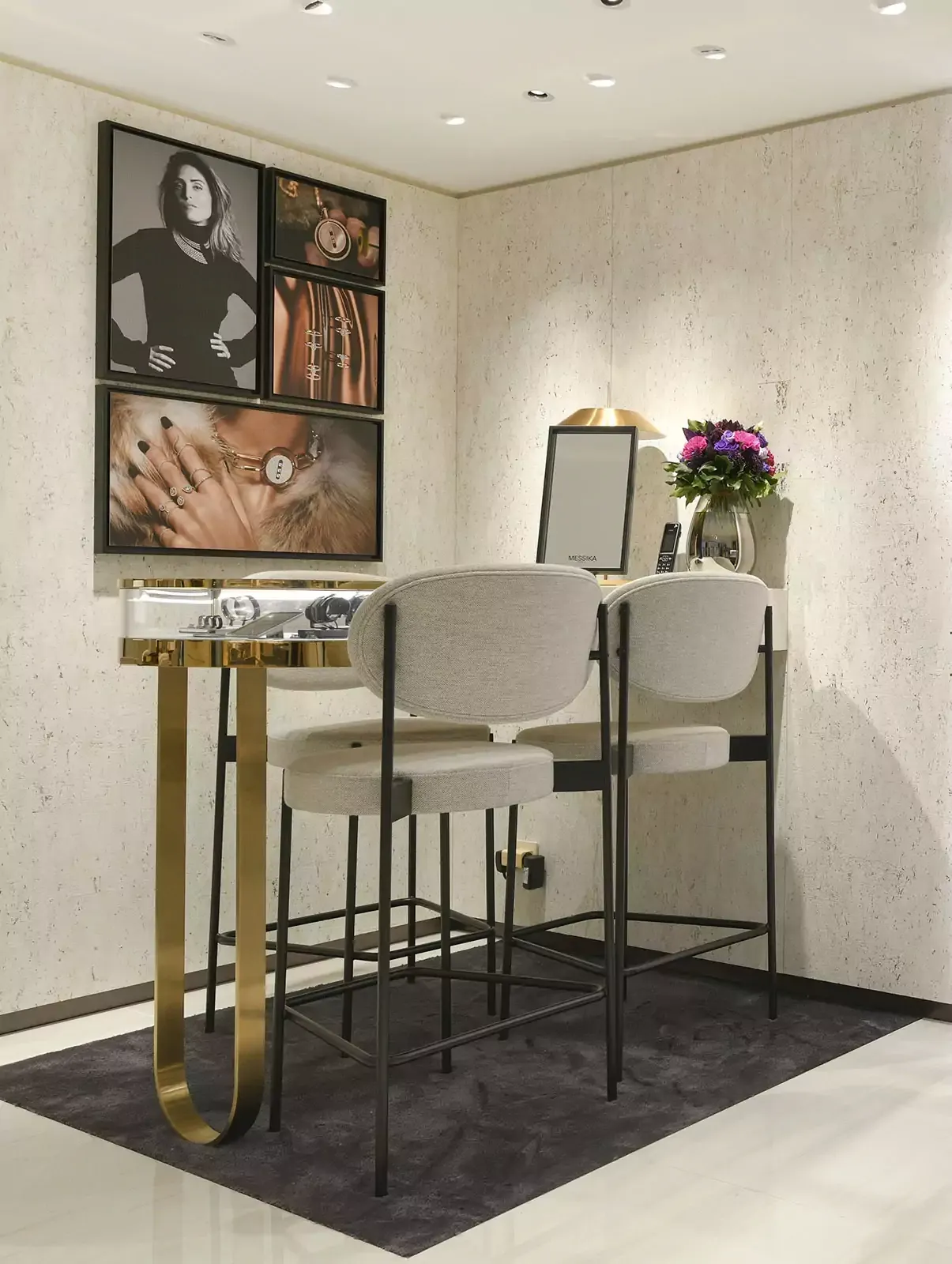 В бутике жители города смогут познакомиться с культовыми ювелирными изделиями Валери Мессики. Насладитесь роскошными мгновениями в окружении золота и бриллиантов, а также откройте для себя закрытый зал на втором этаже. Прекрасная возможность в полном уединении оценить блеск бриллиантов Messika. Испытайте яркие эмоции благодаря очаровательному и современному дизайну, выполненному в золотых и черных оттенках, которые прекрасно сочетаются с мраморной отделкой пространства.