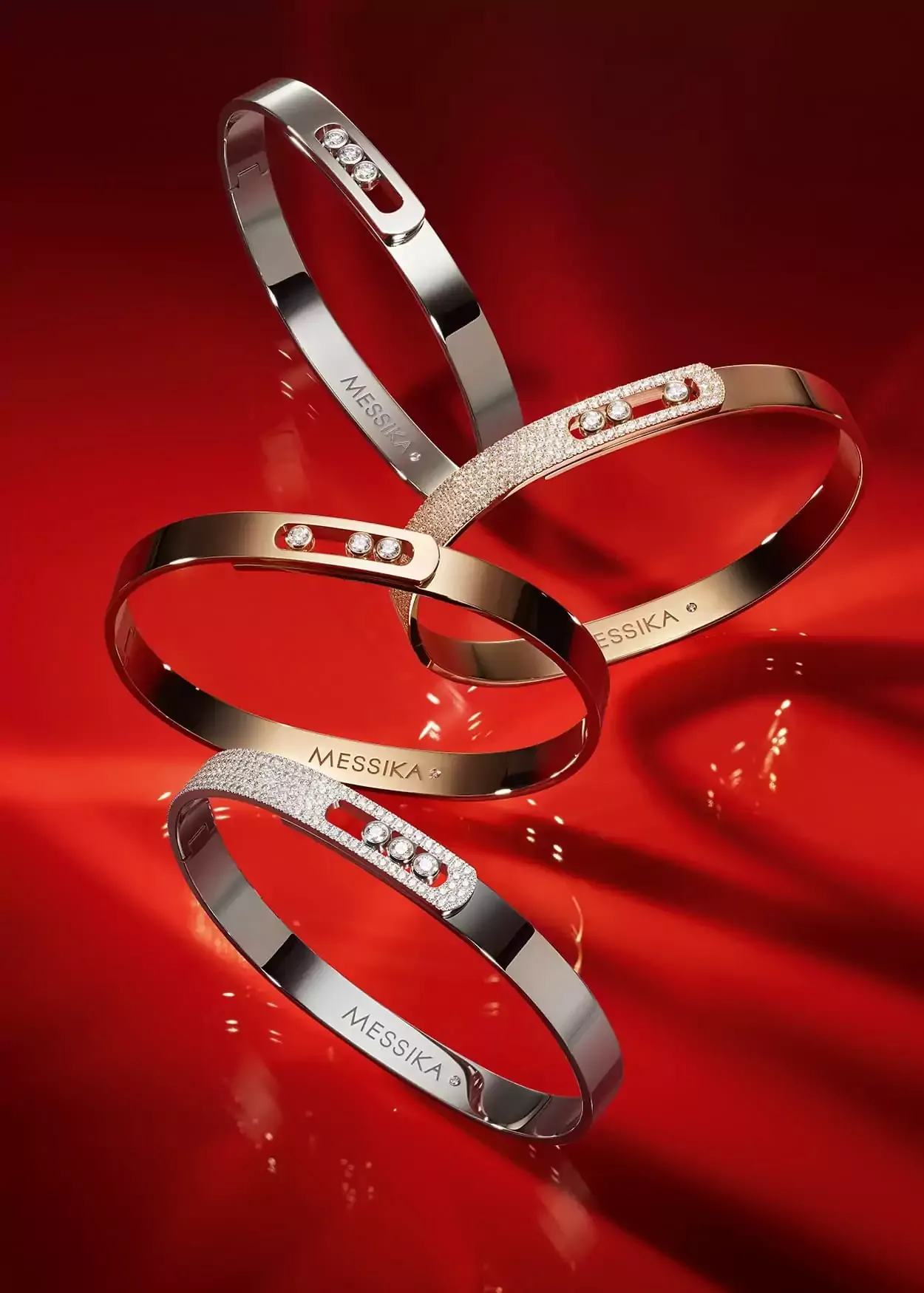 Жесткие браслеты-бэнгл и браслеты-джонк — знаковые украшения Messika. Они присутствуют во многих коллекциях Дома, приобретая то смелый, то неброский облик.