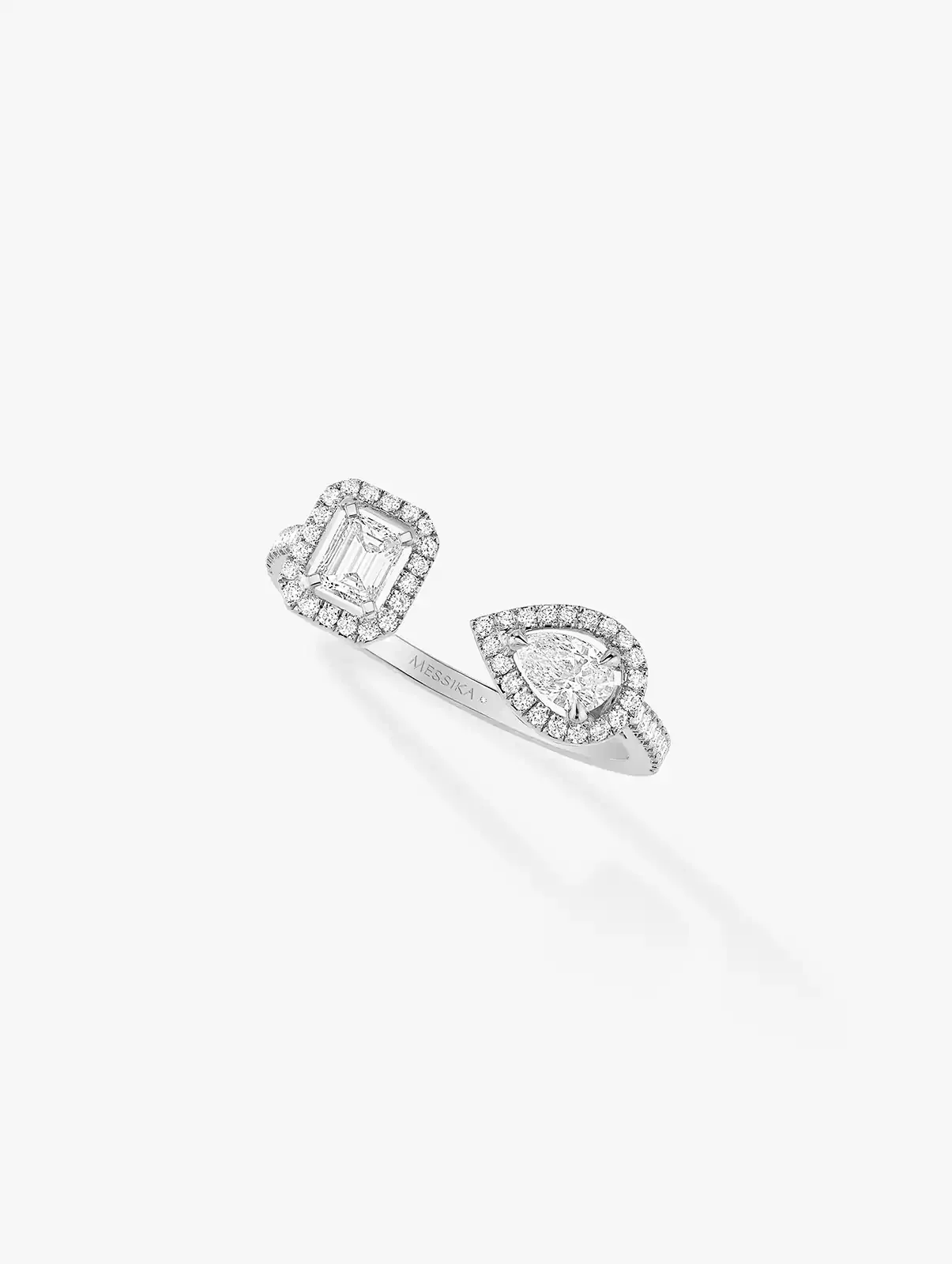 تصميم كلاسيكي آخر لهذا الخريف من خاتم My Twin الماسي. في تصوير مستوحى من مجوهرات Toi & Moi التقليدية، يأتي هذا الخاتم الفاخر ليضفي لمسة من الألق على كل الأيدي. مع حجرين مركزيين، أحدهما إجاصي الشكل والآخر بقطع الزمرّد. يستقطبان كل الطاقة الطبيعية للماس في تصميم واحد من المجوهرات الأنيقة والساحرة والرقيقة. ألن يكون هدية فاخرة لا تُنسى للاحتفاء بترقية أو تغيير العمل أو بداية مهنة جديدة؟