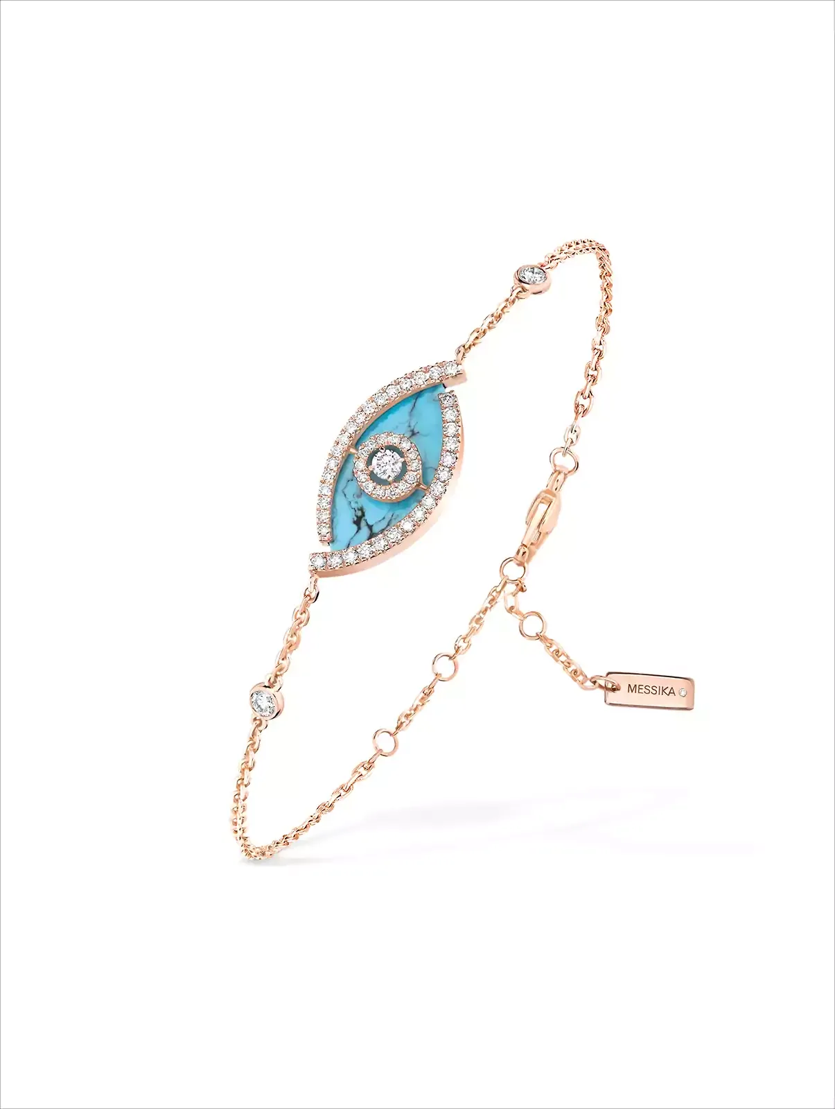 دعوة للسفر ودعوة للاحتفال بالصيف... ذلك ما يدعو إليه سوار الماس والفيروز Lucky Eye والإكسسوار الجديد الضروري في صندوق المجوهرات. يدعو لونه الأزرق المائي، العزيز على فاليري ميسيكا، إلى تحرير النفس وإطلاق عنانها.