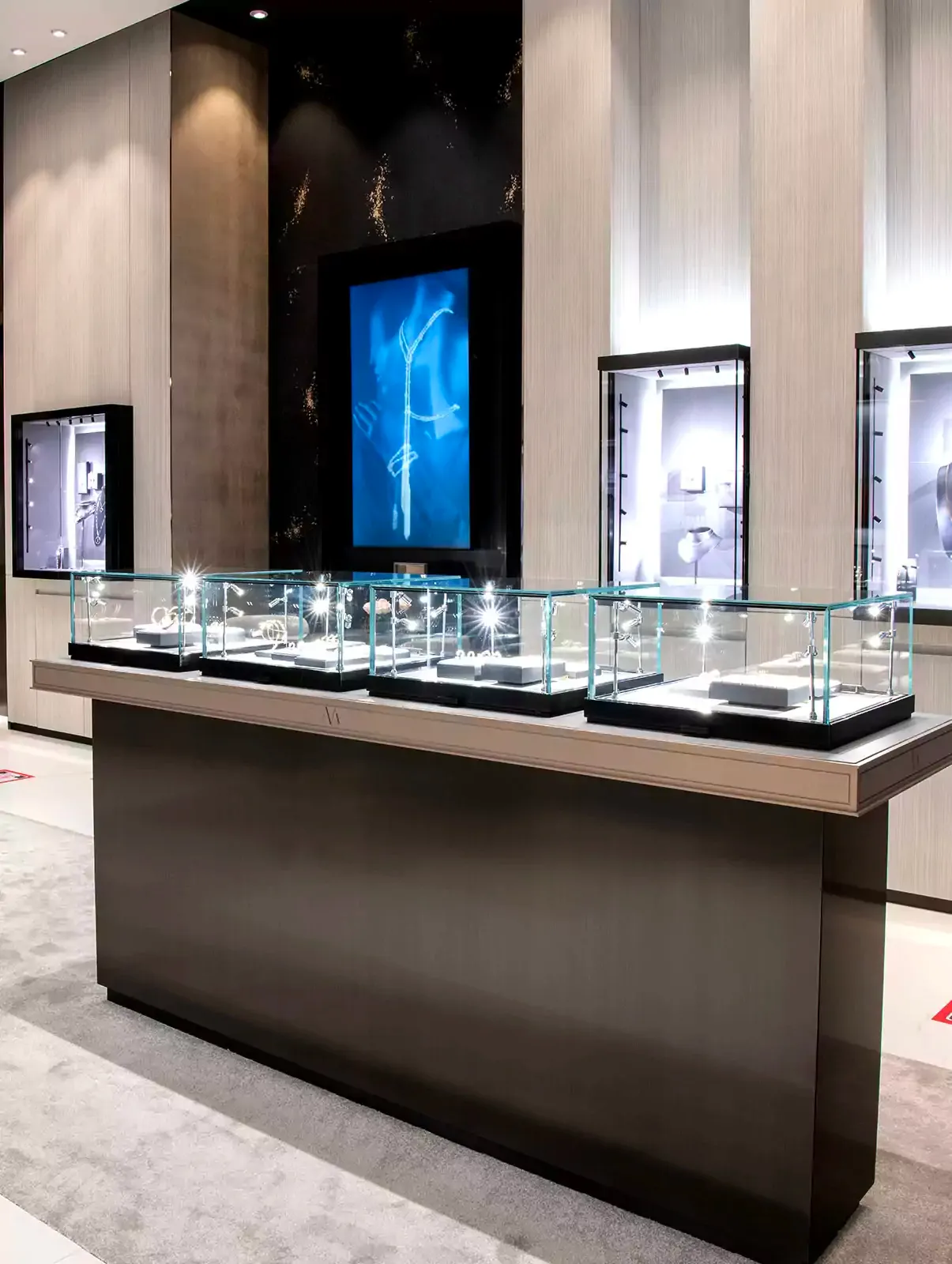 يقع المتجر الذي تبلغ مساحته 61 متراً مربعاً في حي الأفنيوز مول الراقي، وهو من تصوّر فاليري ميسيكا. يقع هذا المتجر في الطابق الأرضي بالقرب من غيره من العلامات التجارية الفاخرة رفيعة المستوى. يغوص العميل في عالم العلامة التجارية منذ دخوله إلى المتجر. فقد ابتكرت المبدعة بيئة ساحرة لمجموعاتها المرصعة بالألماس، تتسم بتصميم متماثل وزجاج شفاف وأرضية من الرخام مع تفاصيل باللون الأسود.