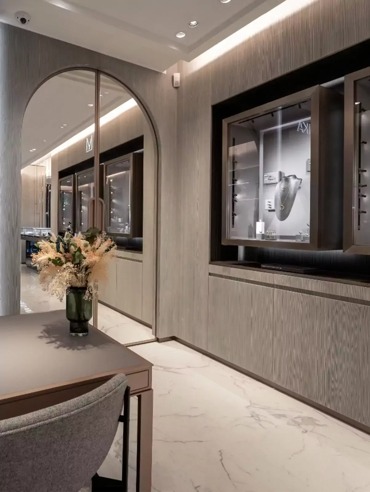 Ce nouvel écrin combine luxe et modernité à travers des lignes graphiques et épurées. L’association du marbre noir et blanc apporte une esthétique élégante et minimaliste. Chaque détail reflète toutes les valeurs et le savoir-faire de la Maison. Les clients sont ainsi plongés dans un cadre authentique et chaleureux imaginé par la fondatrice de la Maison, Valérie Messika.