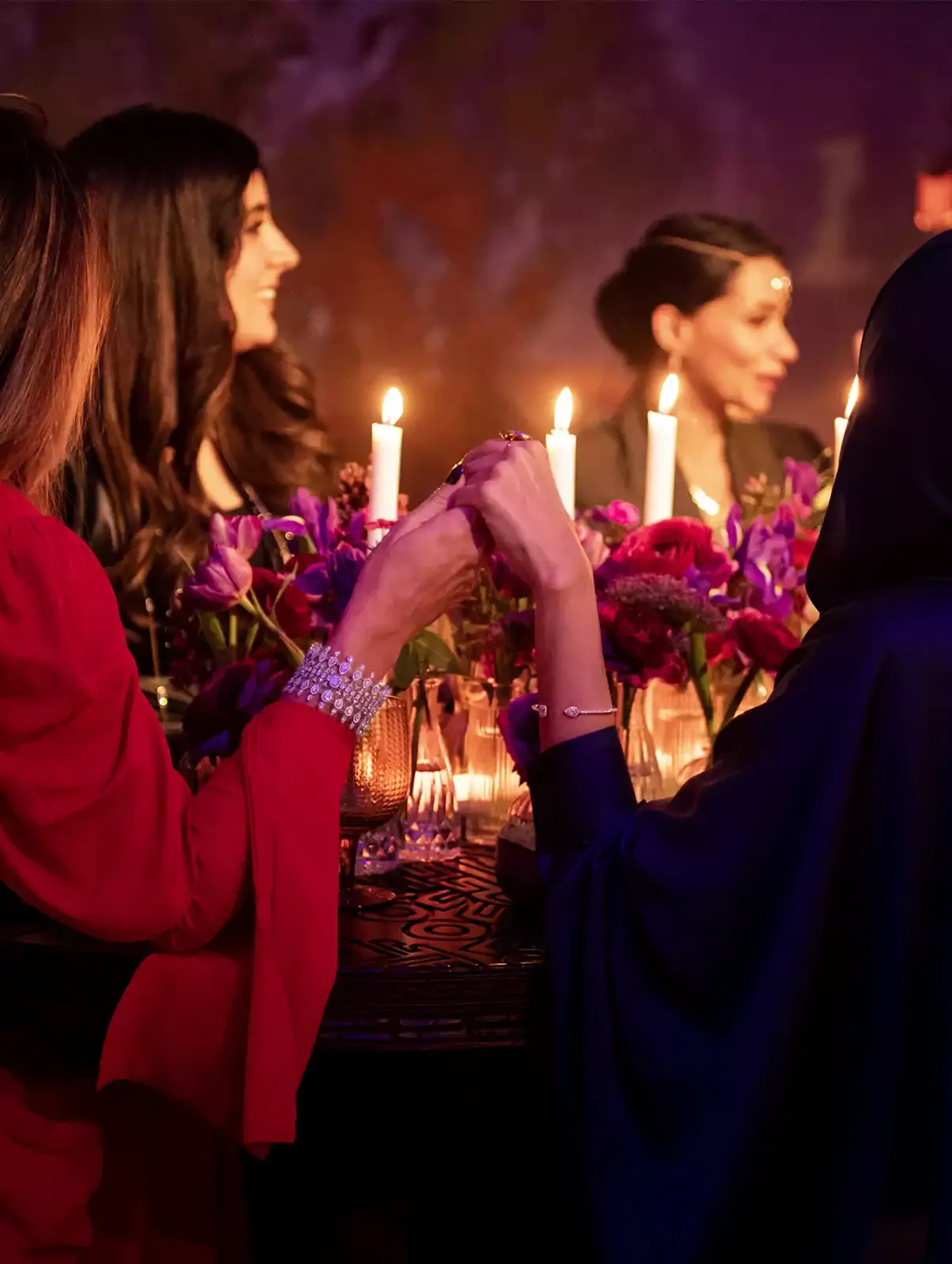Tisser des liens, s’imprégner de l’instant dans une ambiance feutrée et chaleureuse propice au partage, c’est tout cela qu'évoque ce Suhour exceptionnel où chacune des convives arborent des bijoux diamant iconiques de la maison. Leurs multiples facettes, à l’image d’un diamant, reflètent un subtil équilibre de douceur et de force. Véritables cœurs battants de leurs familles, elles sont aussi des entrepreneures modernes et libérées. Ainsi plus que jamais, les femmes du Moyen Orient, sont pour Valérie Messika une réelle source d’inspiration, un souffle créateur intime et authentique.