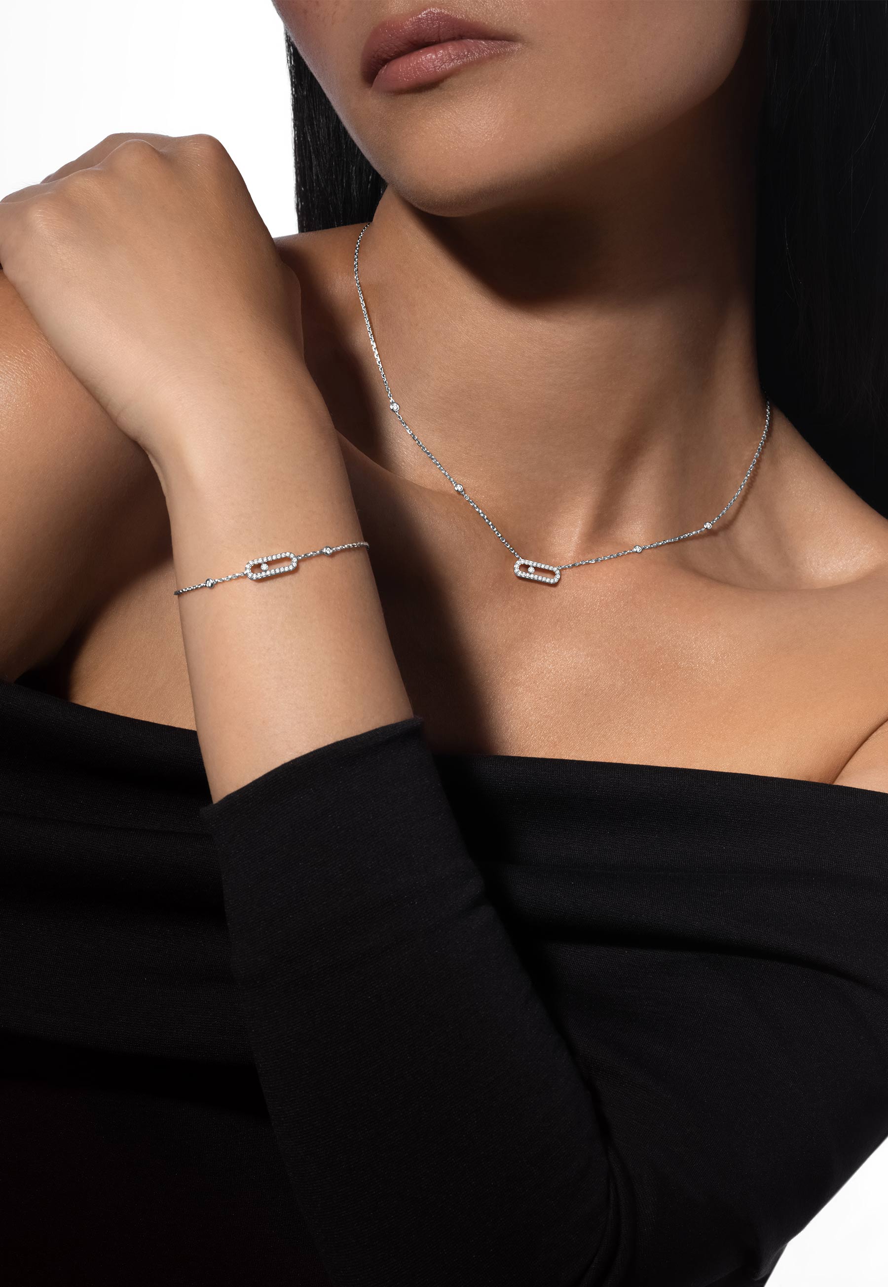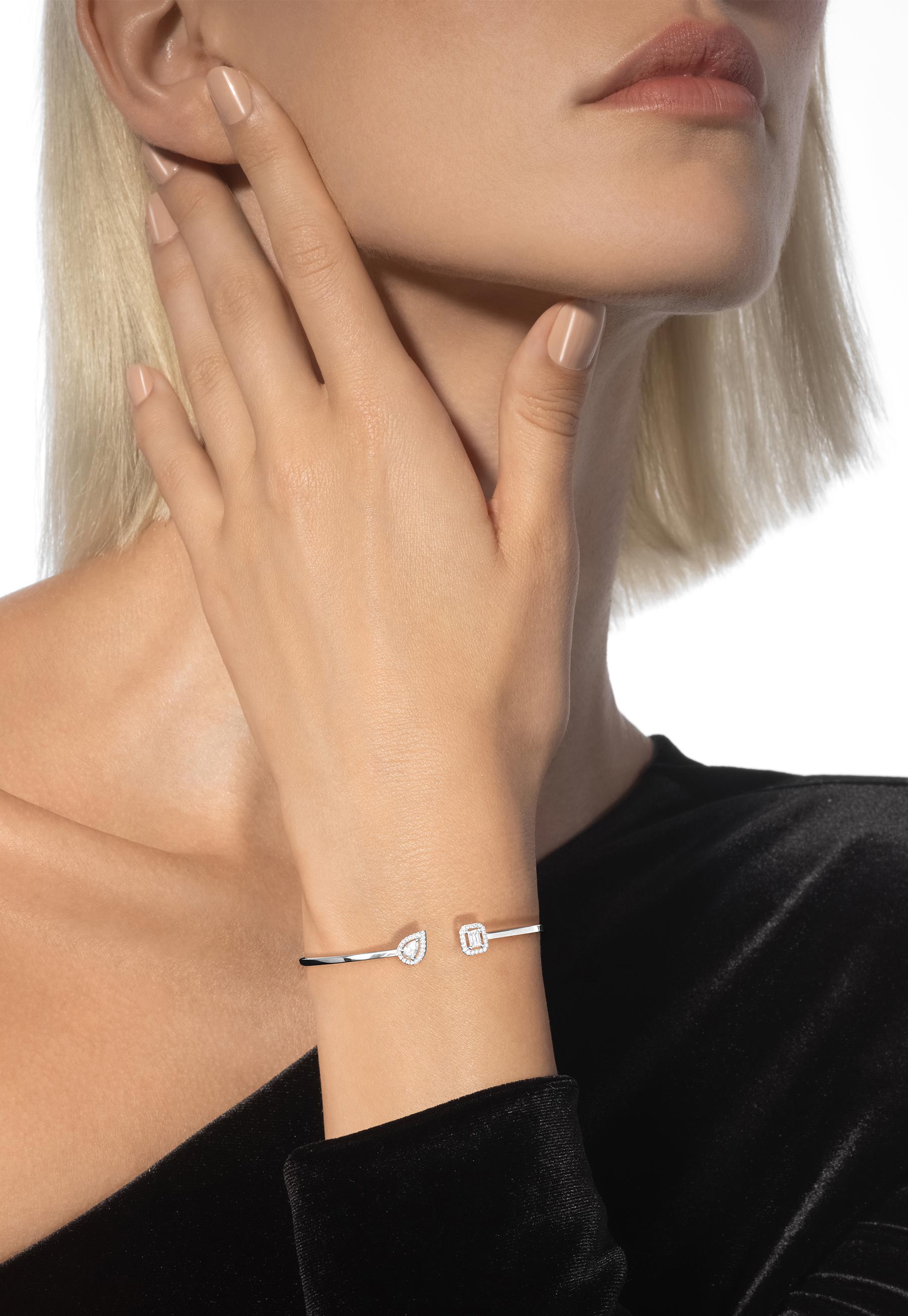 Conçus pour suivre toutes les courbes et contre-courbes de votre poignet, les bracelets or blanc et diamants Messika s’adaptent à tous vos mouvements, tels de véritables rubans de lumière. La blancheur immaculée de l’or blanc s’accorde facilement à tout type de carnation, même les plus claires. Messika développe tout son savoir-faire joaillier pour créer des bracelets or blanc d’exceptions. Minutieusement façonnés, les bracelets diamant femme révèlent tout le savoir-faire des ateliers Messika.