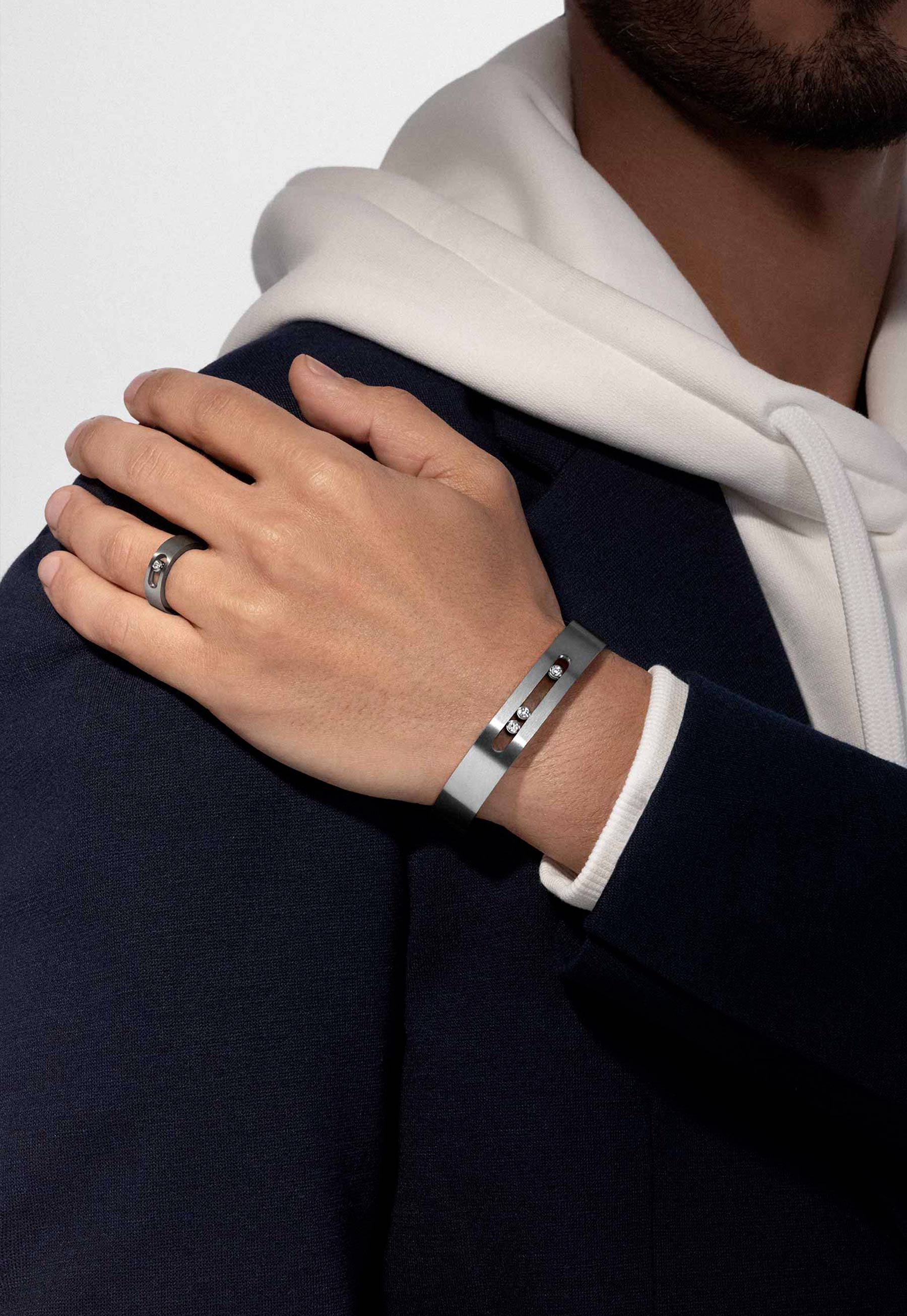 Can a man wear diamonds every day? Valérie Messika says yes and proposes the diamond bangle bracelet as the new timeless staple of men’s wardrobes. Bangle bracelets for men are an all-time jewelry classic. Minimalist and sleek, they’ve got it all. Striking and light with stunning presence when worn, Move Titanium bracelets are the jewelry pieces for you.