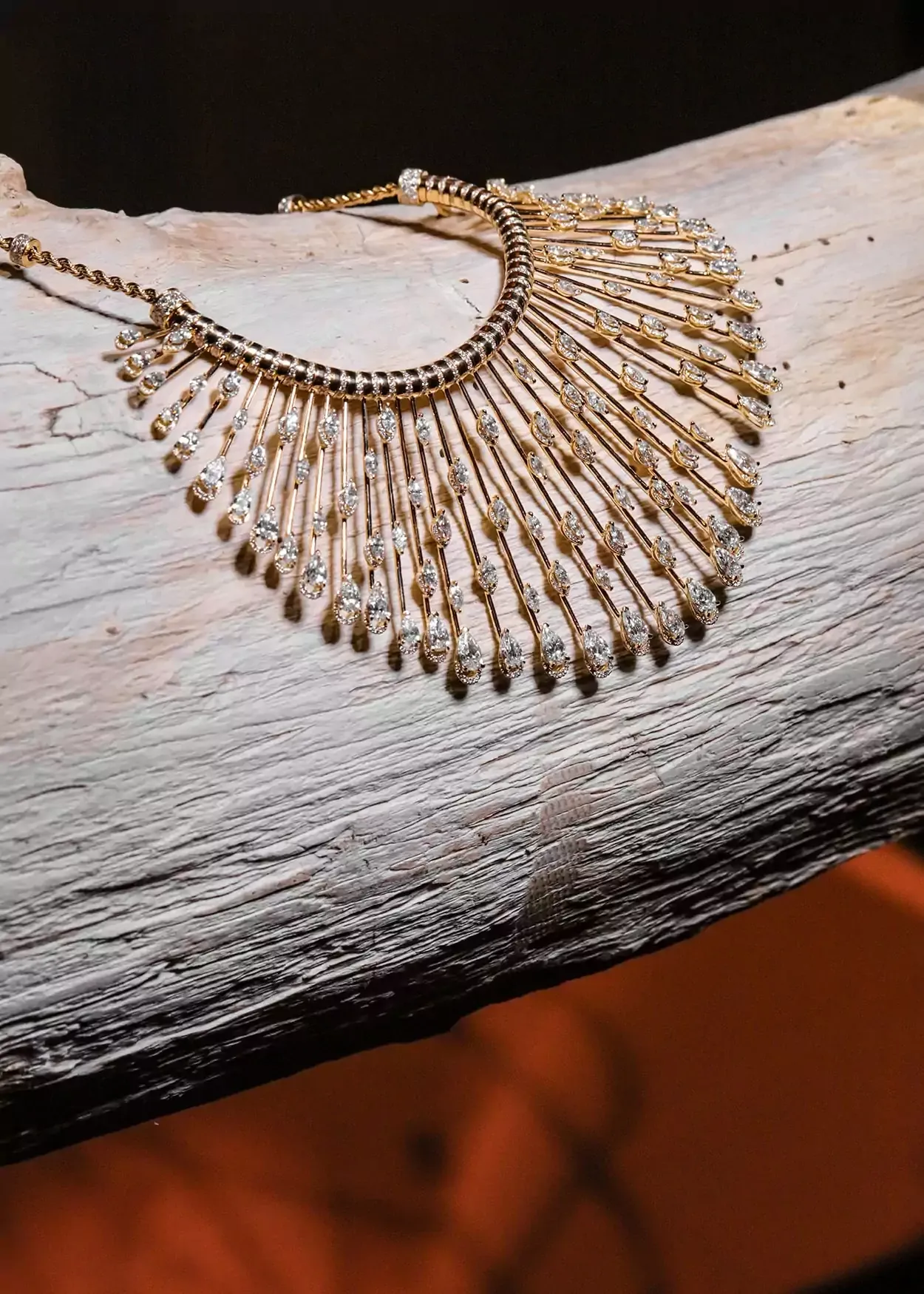 Another novelty for Messika is the use of yellow gold on a High Jewelry diamond piece. Everything is done to convey the idea of a radiant sun. In this new High Jewelry collection, diamond necklaces and other unique pieces tame materials and respond to this nature where the diamond becomes a talisman, a totem.