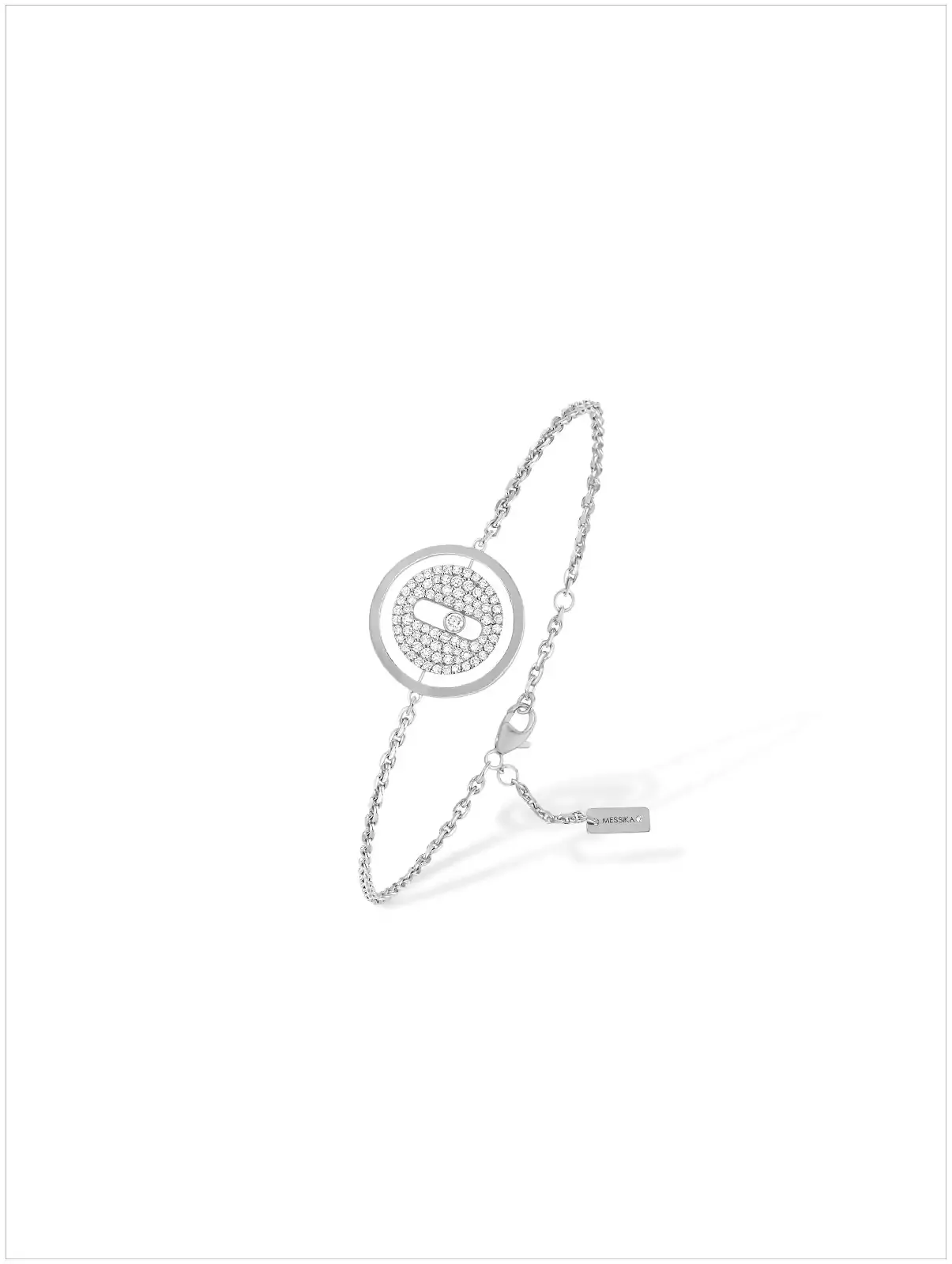 Elegant and feminine, this white gold diamond bracelet is the perfect gift for graduation. You will love the graphic / geometrical spirit of this medallion diamond jewelry piece that will transform your look. A creation that reinvents the good-luck charm as a piece of jewelry.